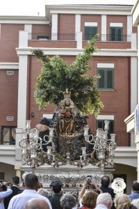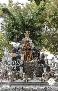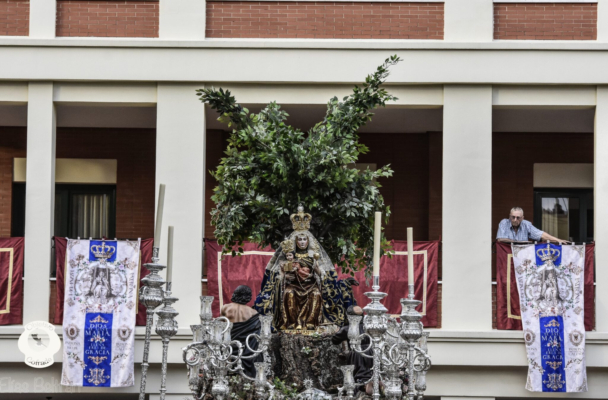 A las 18:15 horas, las puertas del templo se abrieron para dar paso a la imagen, que fue llevada magistralmente por el capataz Juan Manuel Martín Núñez, quien un año más estuvo al frente del paso. Lo acompañaron sus auxiliares, manteniendo la solemnidad y el carácter tradicional de esta procesión. Como viene siendo habitual desde 2014, la asociación filarmónica cultural Santa María de las Nieves de Olivares puso la banda sonora a la procesión, celebrando con ello diez años de acompañamiento musical a la Virgen.