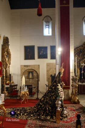El templo, siempre cargado de historia y espiritualidad, ha recibido una constante afluencia de personas que han querido contemplar de cerca a la Virgen, vestida para la ocasión con sobria elegancia y rodeada de un exorno floral delicado y armonioso. La cercanía de la imagen ha propiciado momentos de recogimiento a lo largo de ambas jornadas, marcadas por la participación de la feligresía y hermanos que han acudido a la cita con la titular dolorosa.