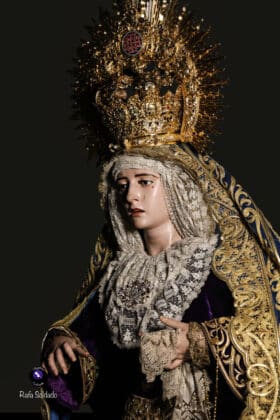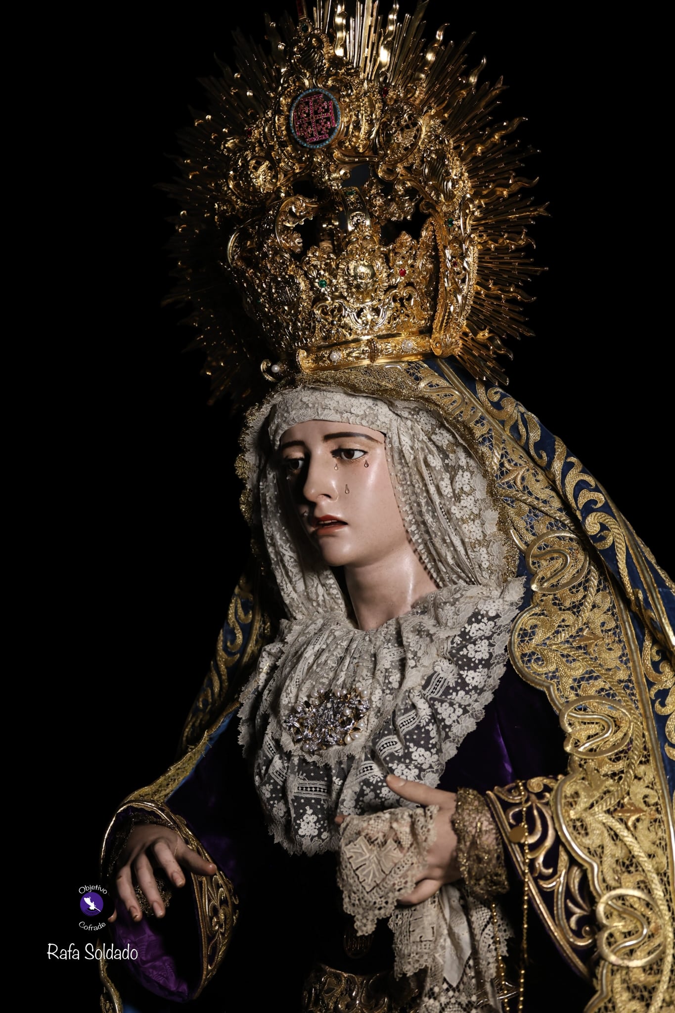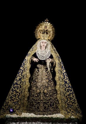 La Virgen de la Concepción se presentó en el presbiterio bajo una cuidada disposición, rodeada de cirios y flores que realzaban la belleza clásica de una de las devociones más antiguas de la ciudad. Fieles, hermanos y devotos se acercaron a lo largo del día para mostrar su respeto y su cariño a la Titular letífica de la corporación.