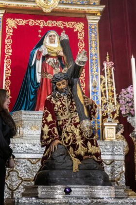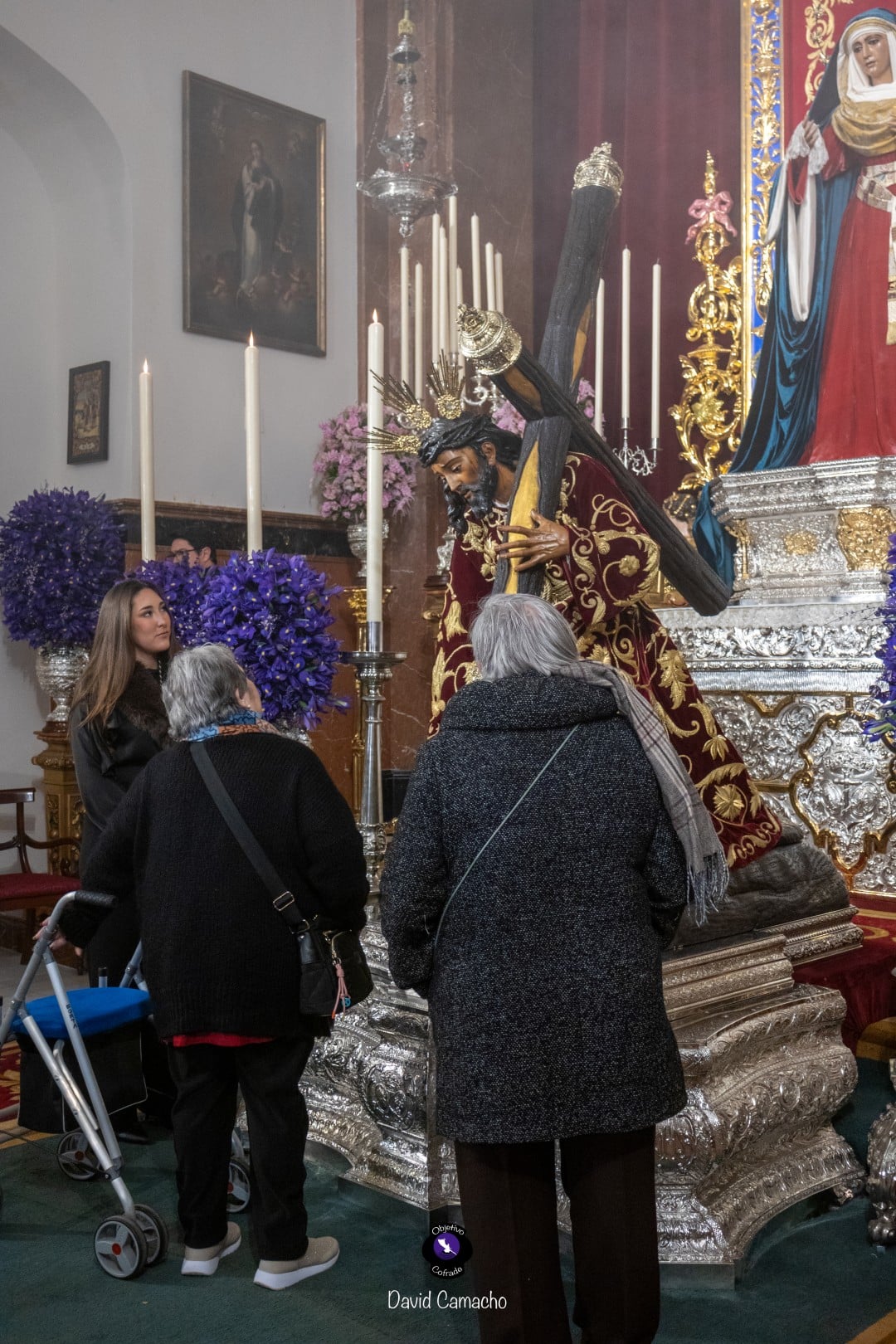 La Hermandad Sacramental de la Esperanza de Triana celebra desde hoy, Miércoles de Ceniza, el devoto besamanos en honor al Santísimo Cristo de las Tres Caídas en la Capilla de los Marineros, marcando así el inicio del tiempo cuaresmal para la corporación trianera.