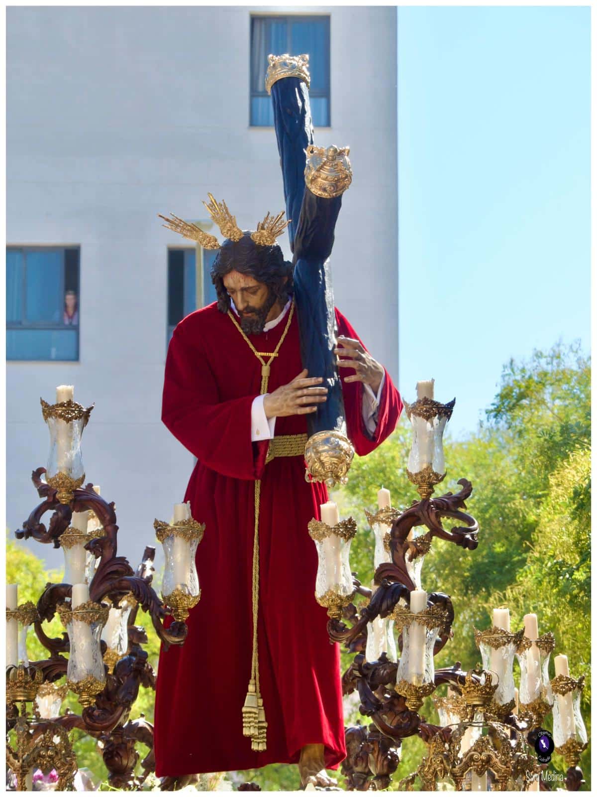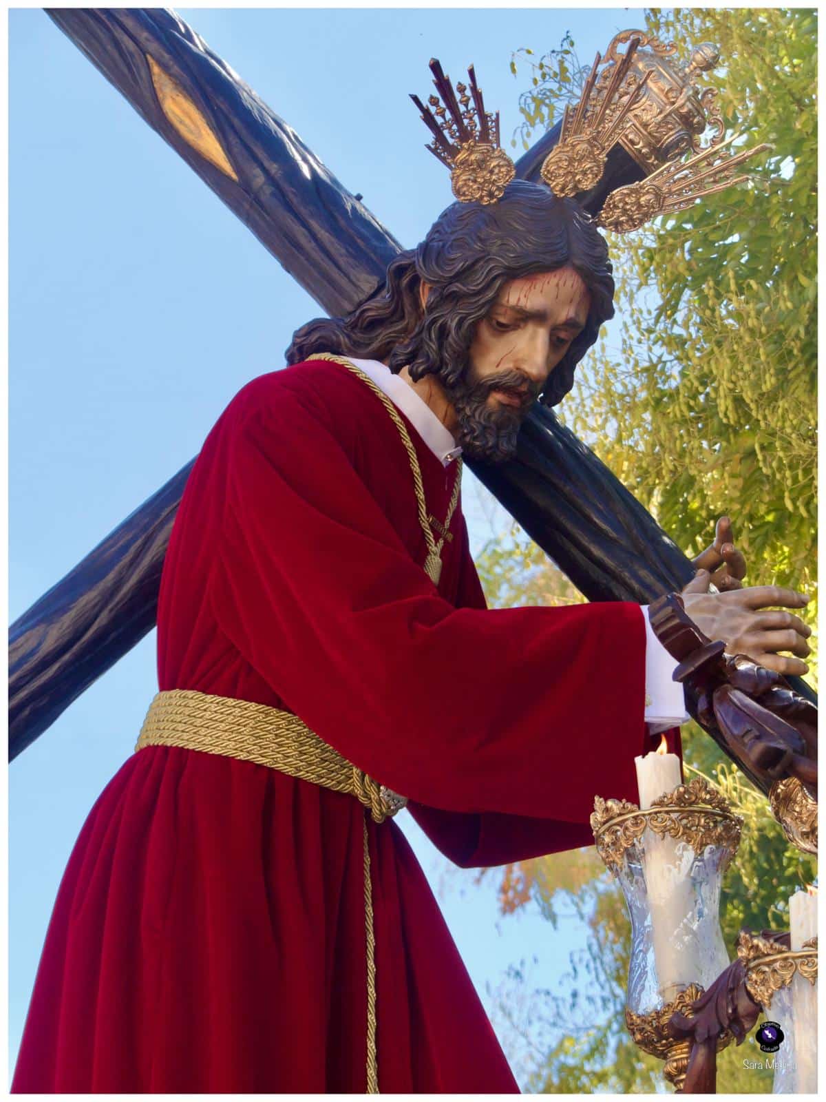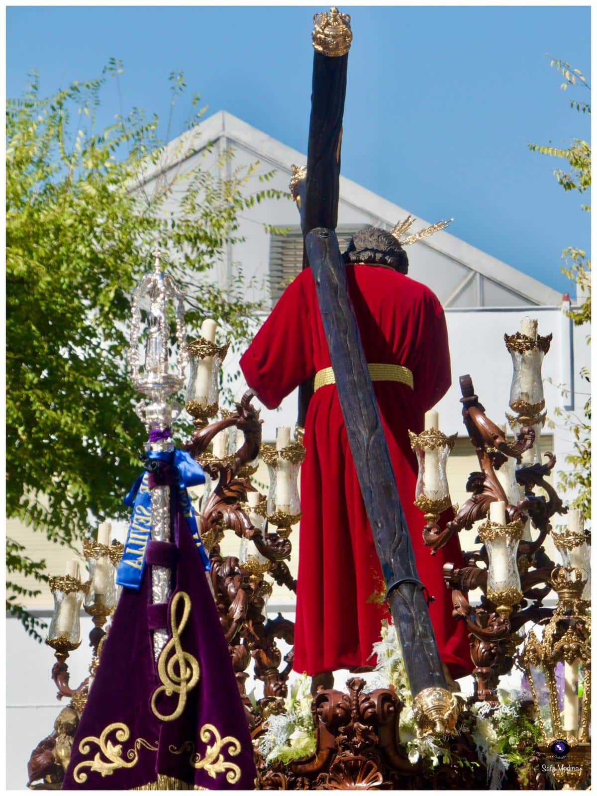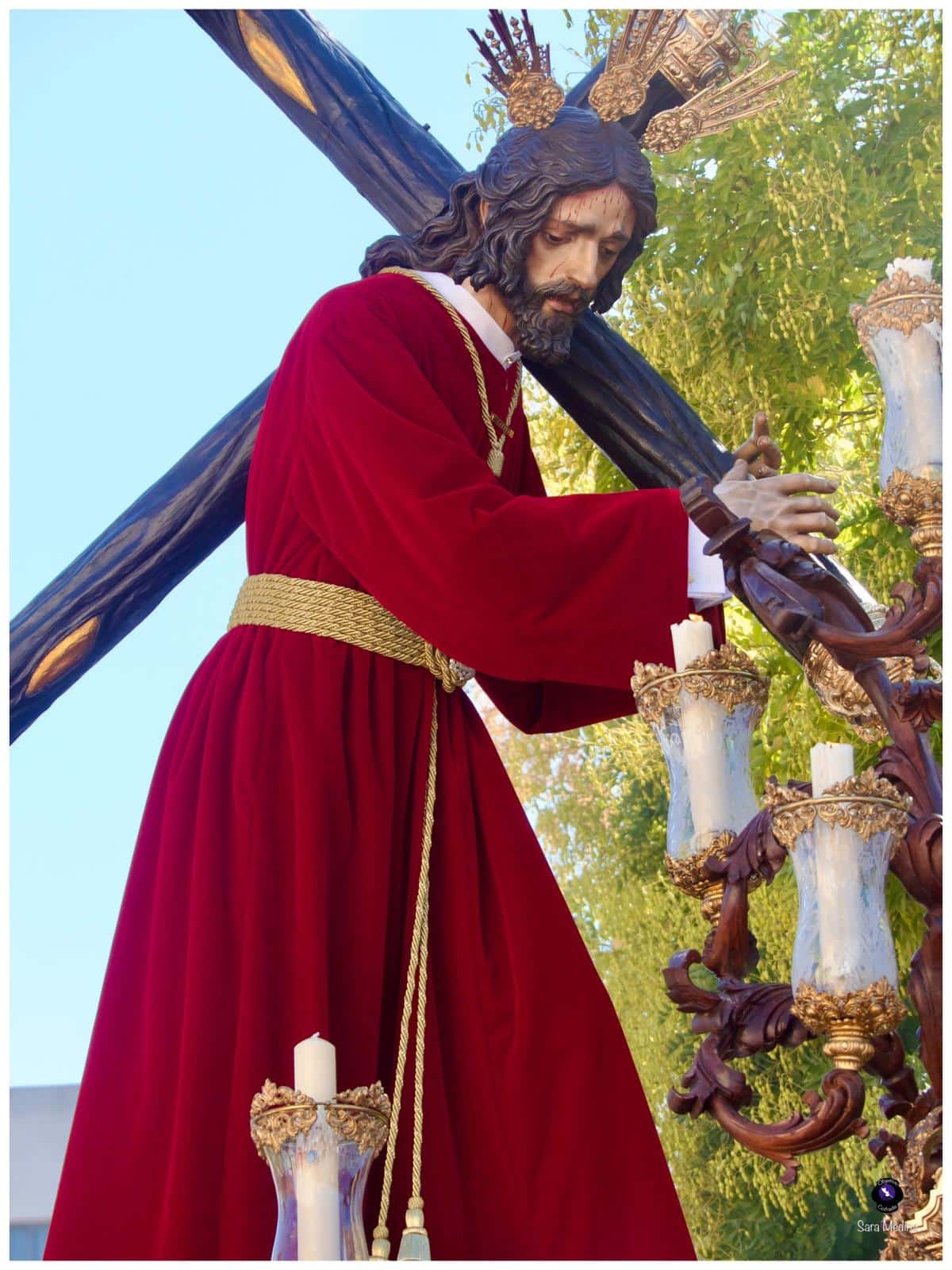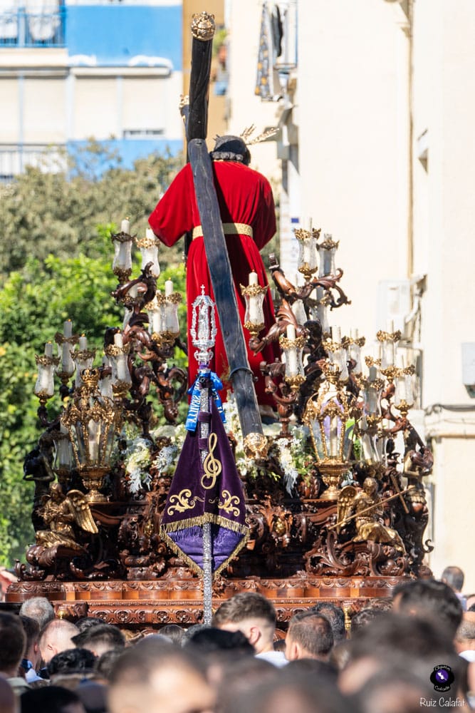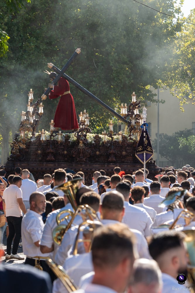 El acompañamiento musical corrió a cargo de la Agrupación Musical Nuestra Señora de la Encarnación, de la Hermandad de San Benito, y de la Banda de Música Santa Ana de Dos Hermanas, que interpretaron marchas clásicas y de profundo sentido devocional durante todo el recorrido. Bajo las trabajaderas, la cuadrilla de costaleros dirigida por Juanma Cantero supo mantener un paso elegante y firme, dando muestras del compromiso y la entrega que caracterizan a esta Hermandad del Domingo de Pasión.