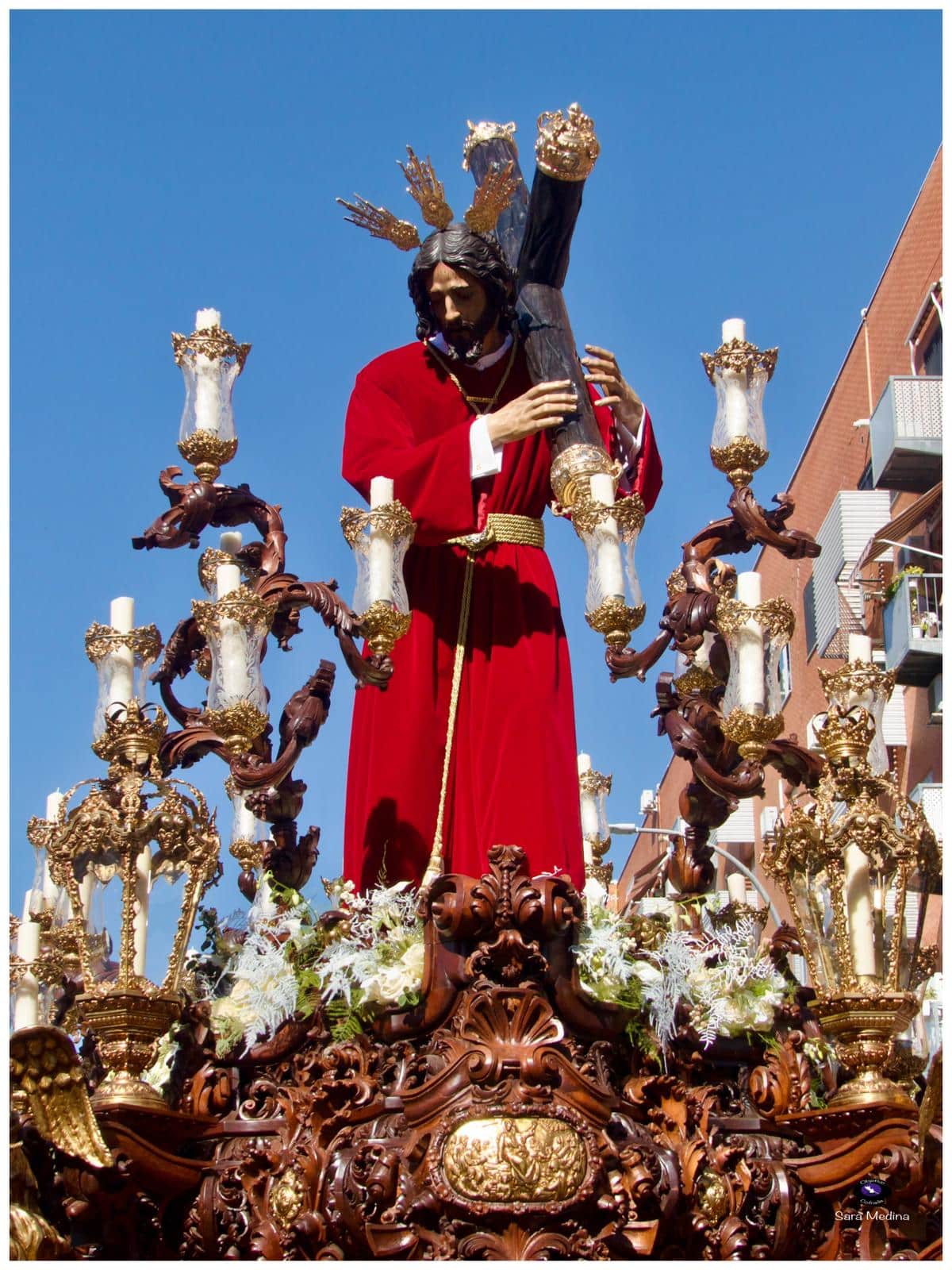 El exorno floral, sobrio y elegante, en tonos blancos, realzaba la figura del Señor sin restarle protagonismo. Bajo un sol intenso, el paso avanzó entre vítores y cánticos hasta su entrada en el templo, poco después de las tres de la tarde, culminando así una procesión que quedará grabada en la memoria de los hermanos y vecinos.