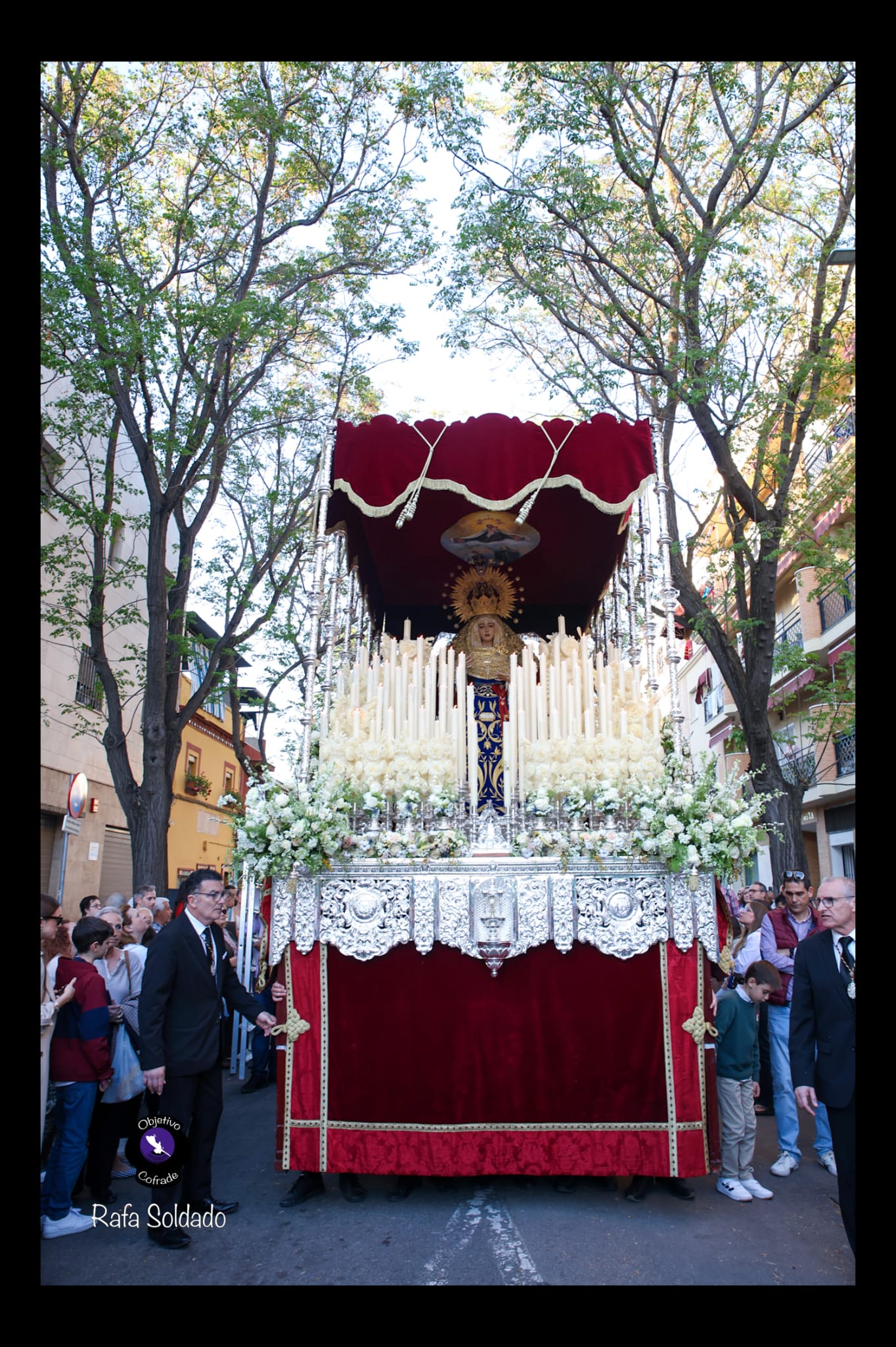a las 16:45 realizaba su salida por las calles del barrio, realizando estación de penitencia en la Iglesia del Inmaculado Corazón de María, con un nutrido cortejo de nazarenos, el fervor de un barrio que lleva el amor de sus titulares por las calles hasta pasadas las 3:15 de la madrugada.