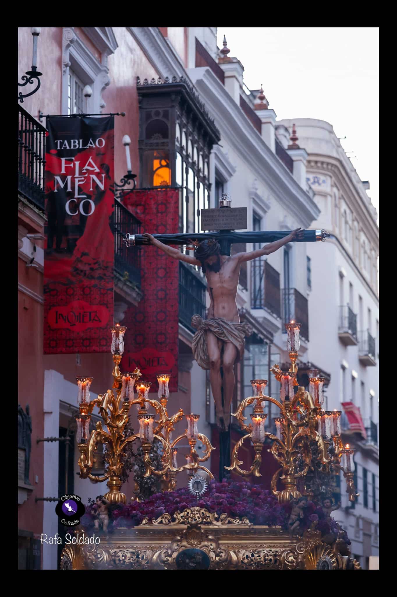 La imponente talla de Martínez Montañés recorrió las calles más céntricas bajo los sones de la Banda Municipal de la Puebla del Río. El discurrir del crucificado por la calle Rioja y su entorno fue uno de los momentos más solemnes y comentados del día, aportando un aire de “Semana Santa de siempre” a este Sábado de Pasión.
