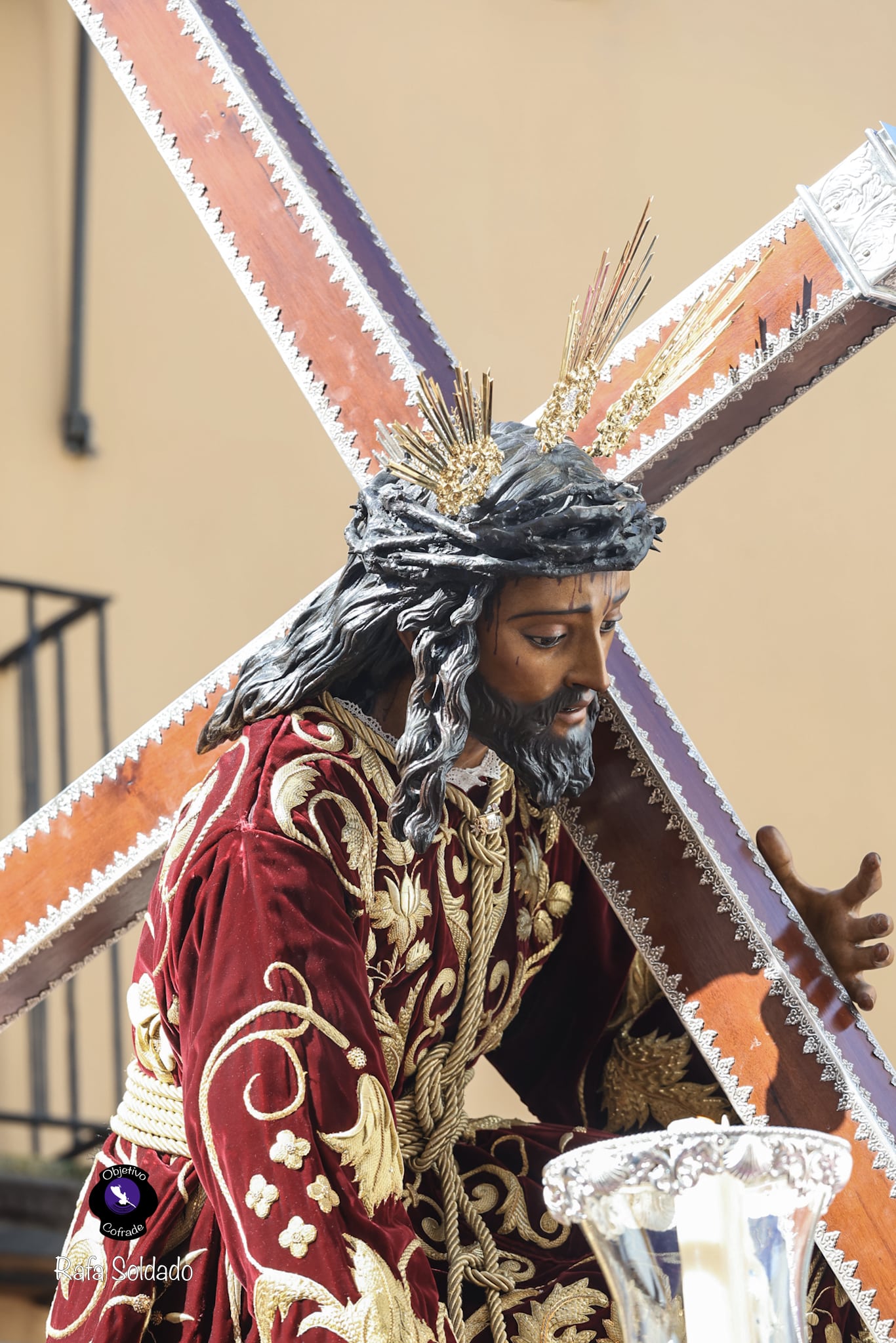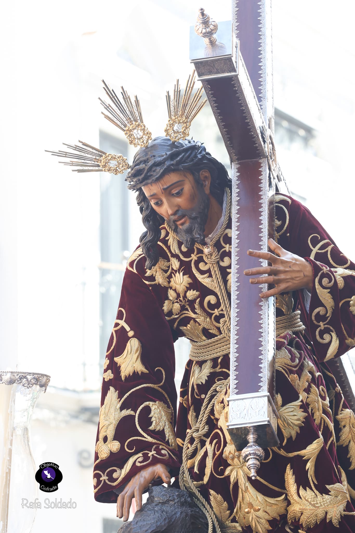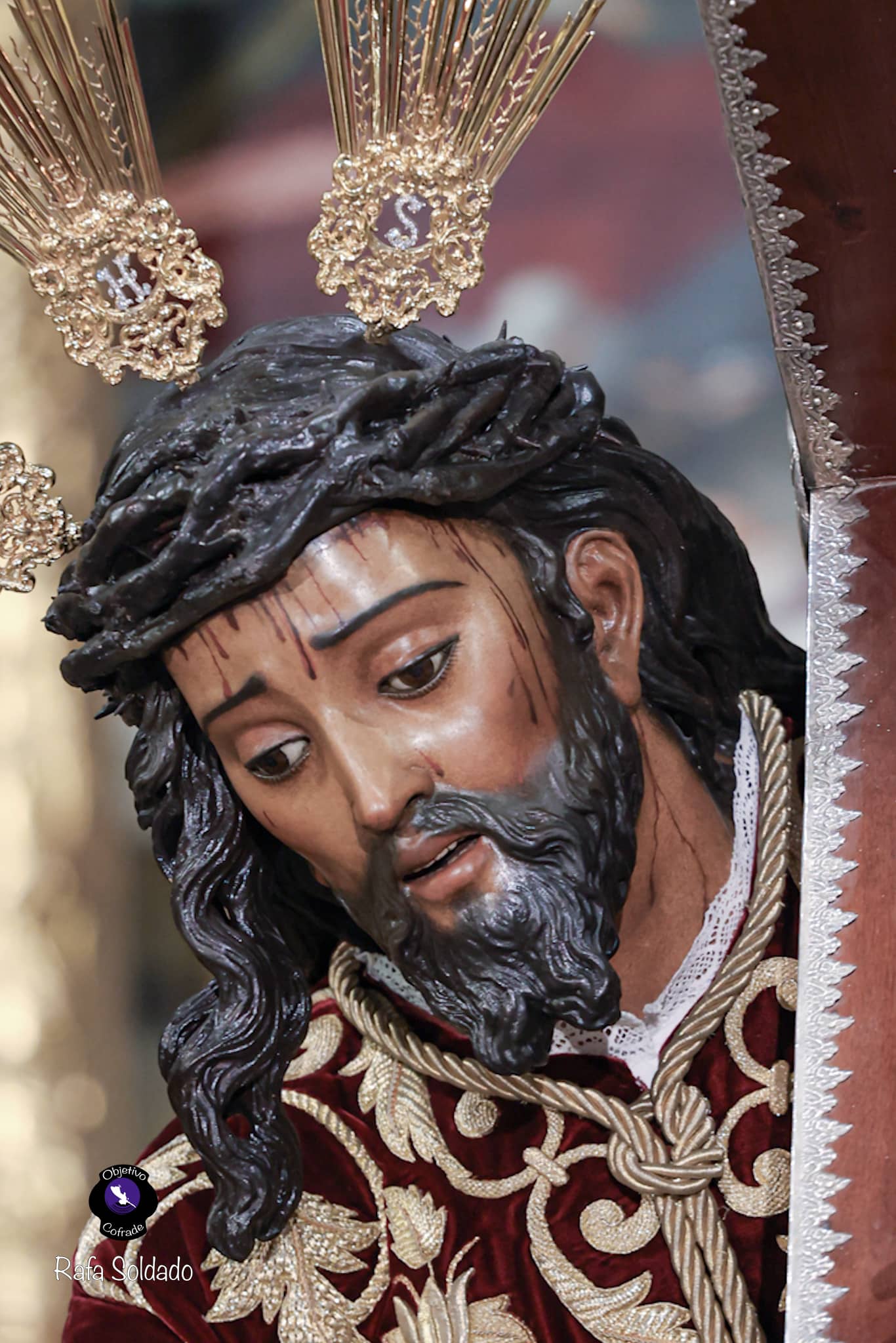 La salida desde la parroquia dejó imágenes de gran solemnidad. El Señor fue portado en andas por sus hermanos, en medio de una densa nube de incienso y con los sones de la Banda de Cornetas y Tambores San Juan Evangelista, formación propia de la hermandad, que acompañó musicalmente durante todo el recorrido.