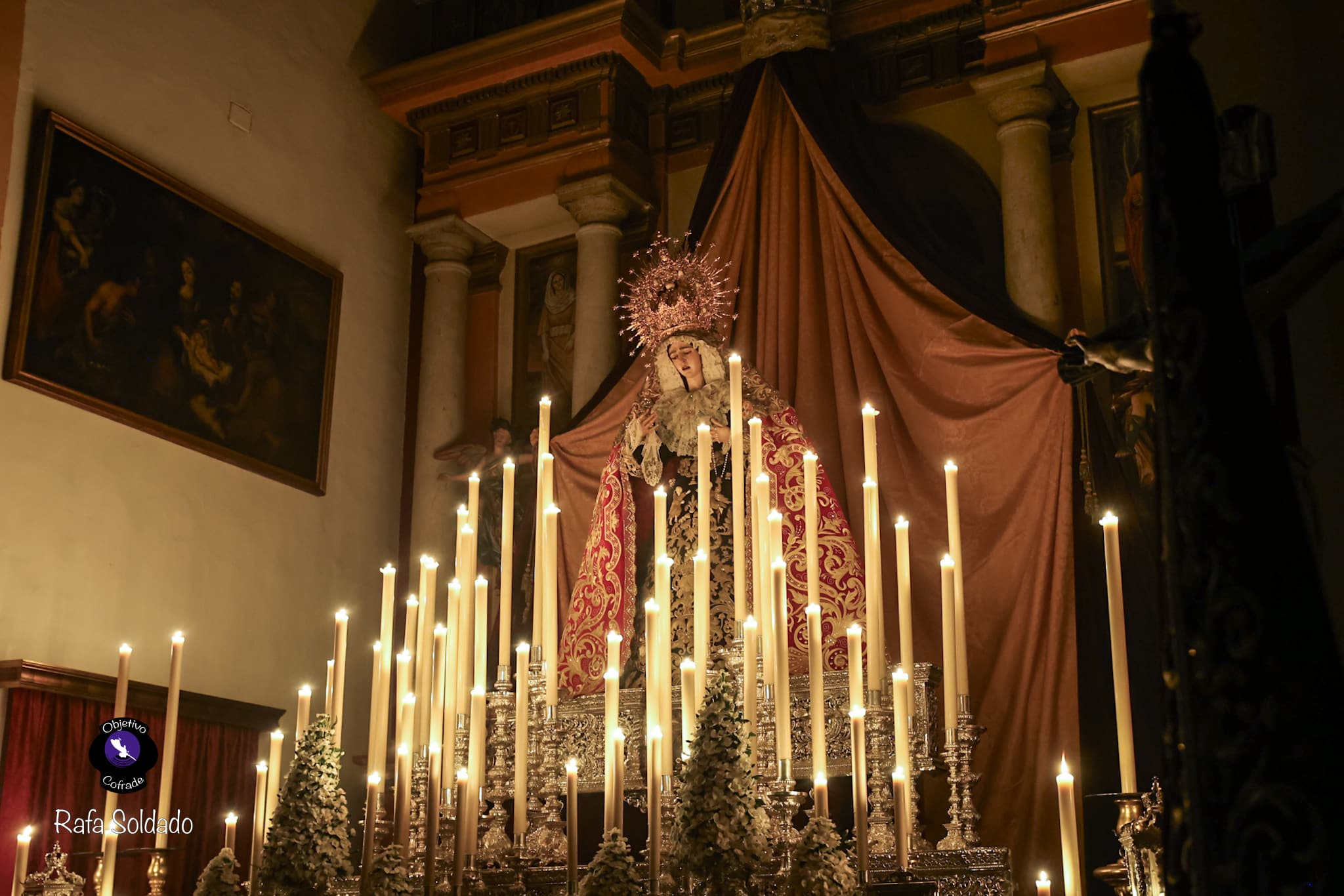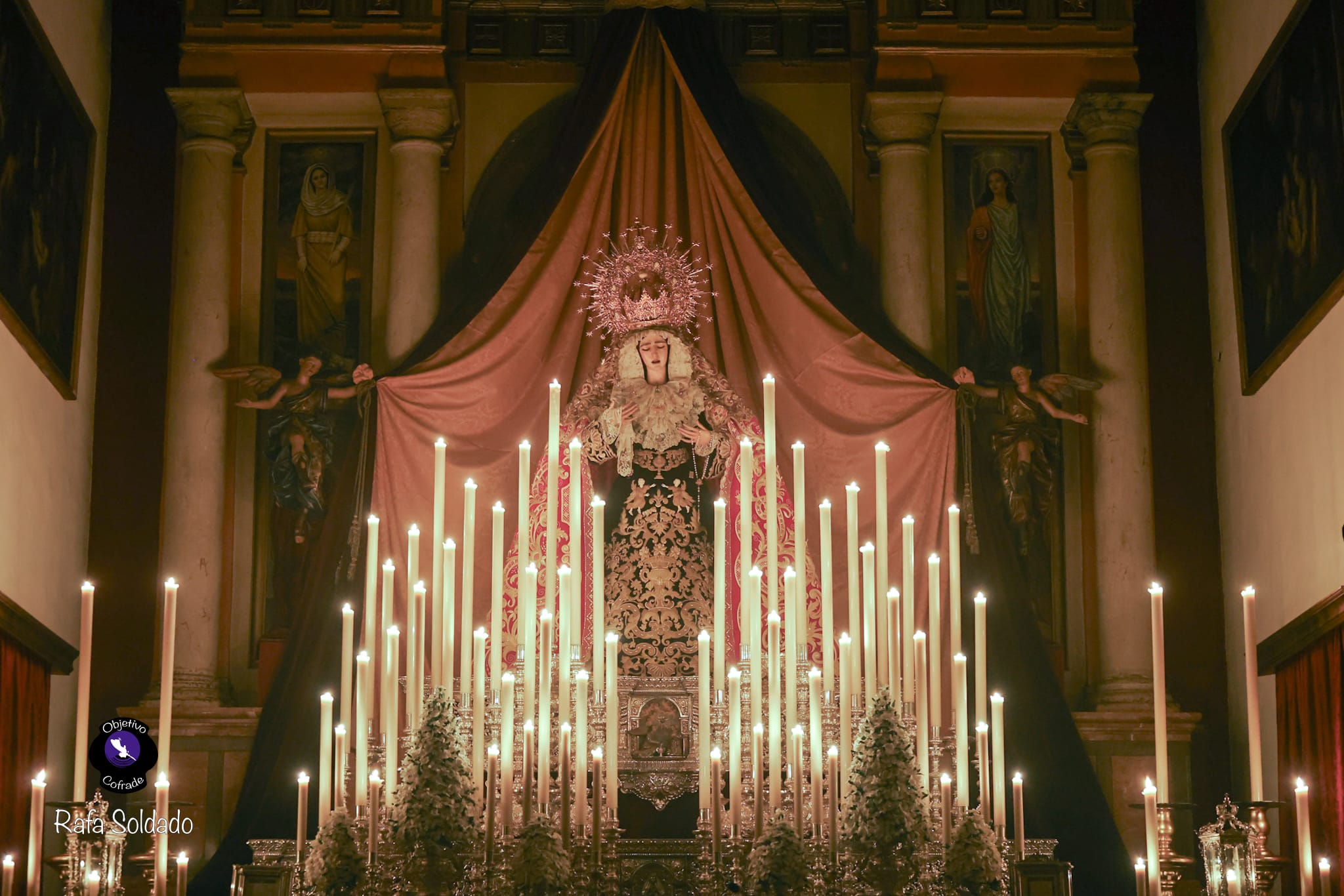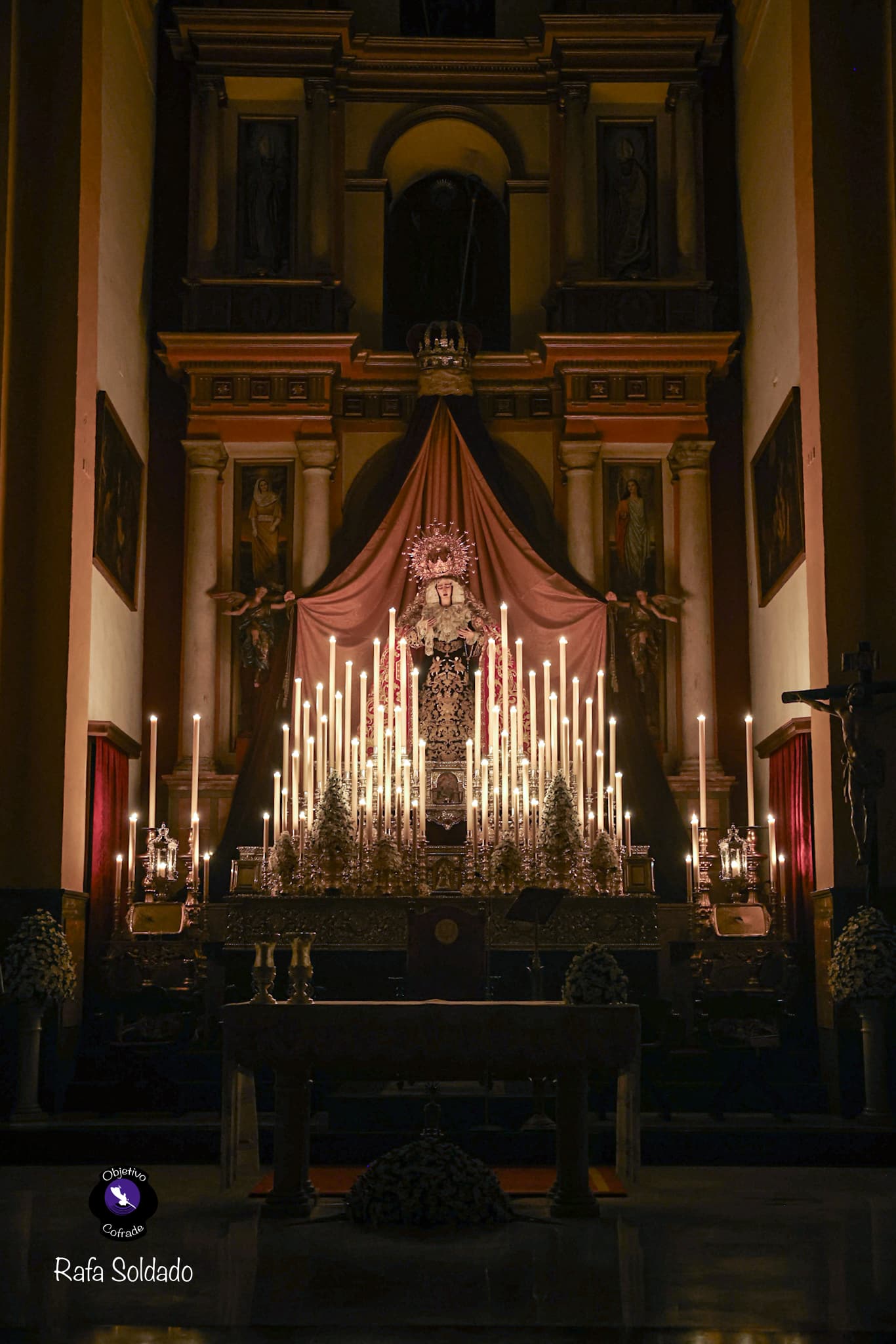 Al final de esta noticia, una galería fotográfica realizada por Rafa Soldado para Objetivo Cofrade, con detalles del altar de triduo de la Virgen de la Encarnación en la parroquia de San Benito Abad.