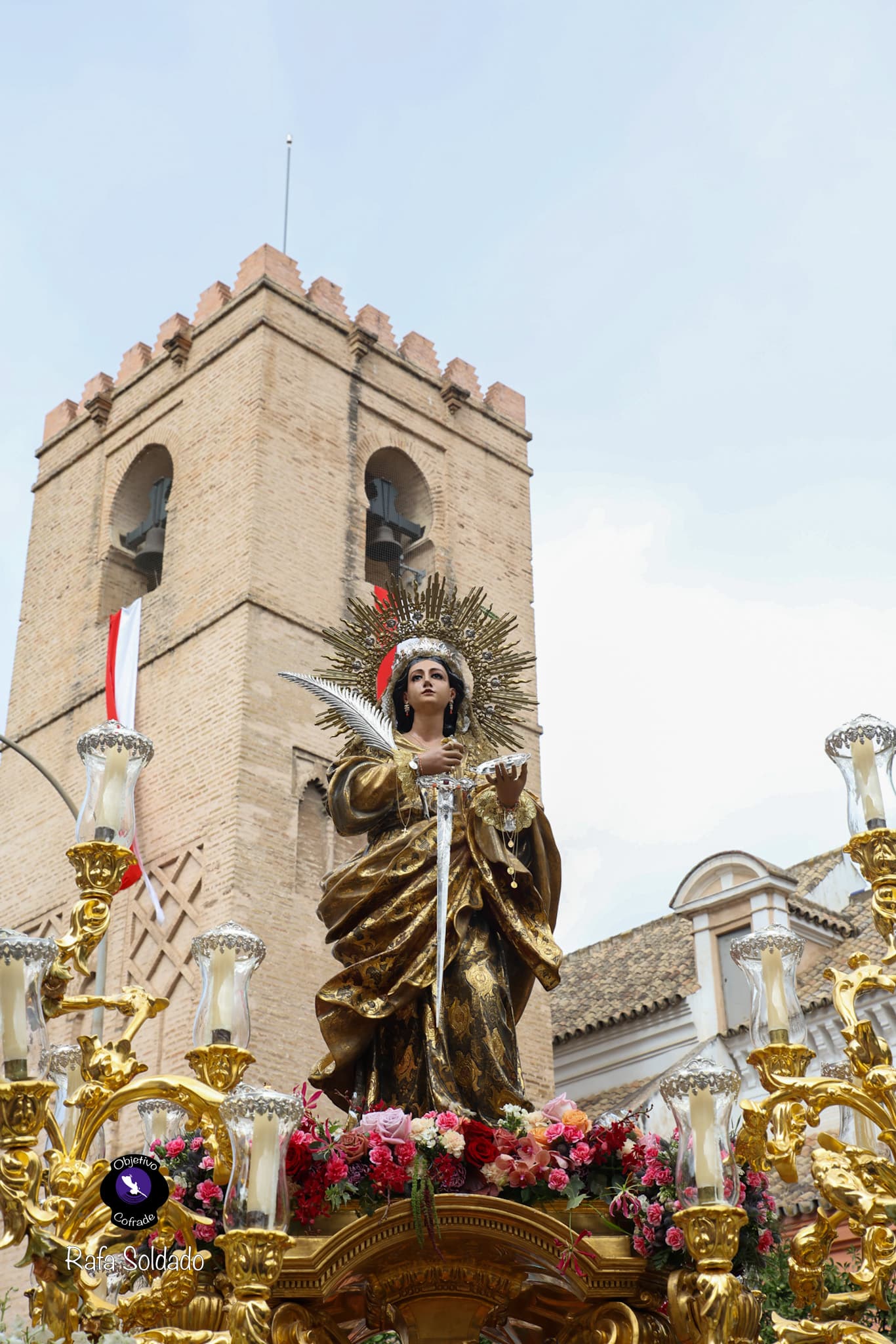 La Virgen de Santa Lucía salió desde la iglesia de Santa Catalina en la mañana del domingo. La procesión discurrió por un amplio recorrido que incluyó lugares como la plaza de San Román, Doña María Coronel o la plaza de San Leandro. La Banda de Música del Liceo de Sevilla acompañó a la titular, que regresó a su templo en torno a las 15:15 horas.