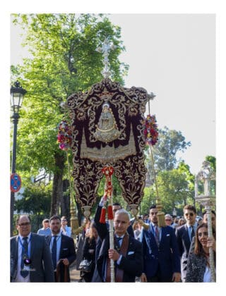 El pasado 12 de abril, la Hermandad protagonizó el solemne traslado de su Bendito Simpecado hasta la Iglesia Colegial del Divino Salvador, donde se prepara para presidir el Pregón de las Glorias de Sevilla 2026.