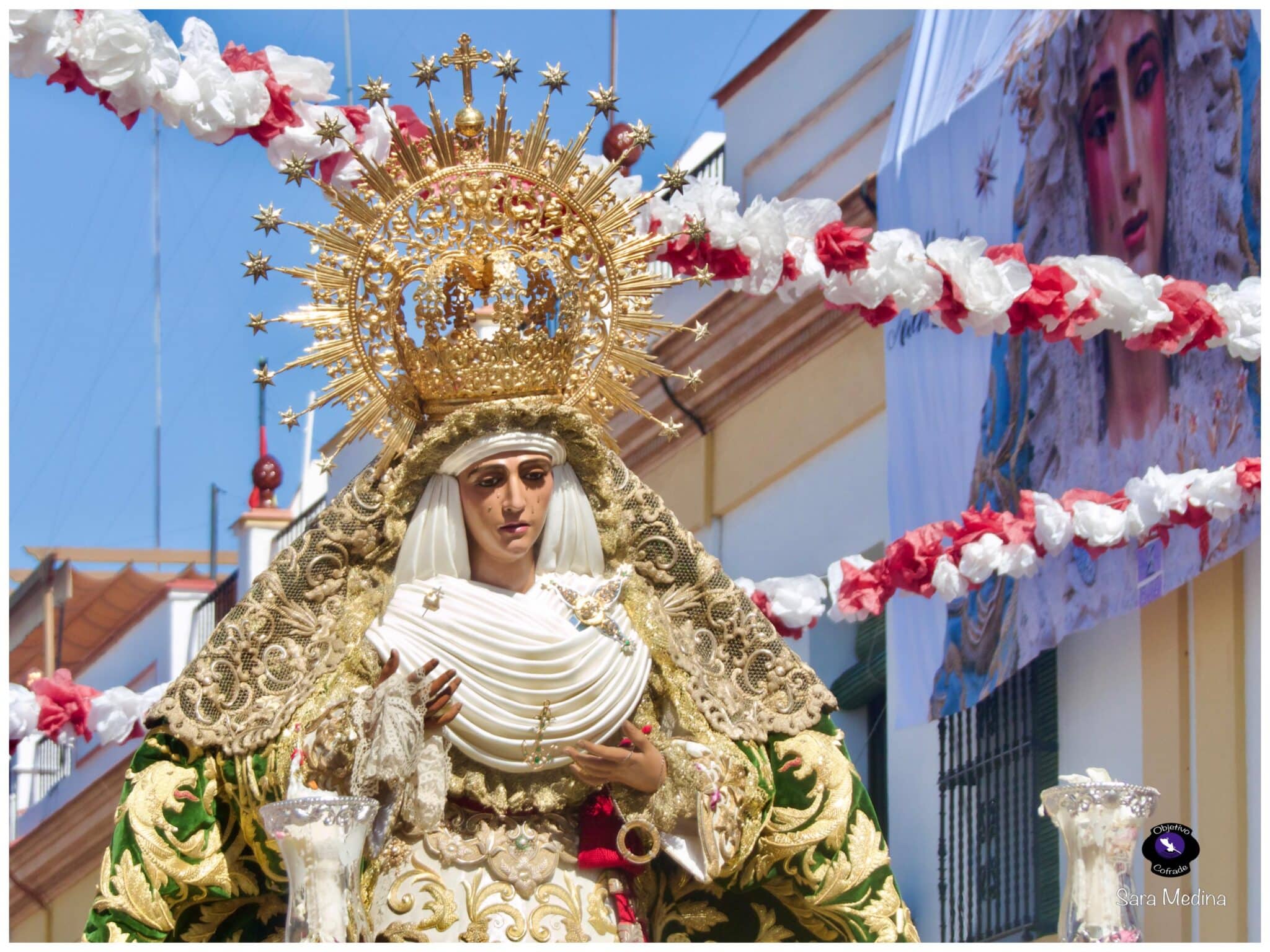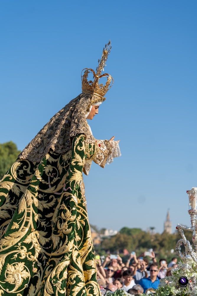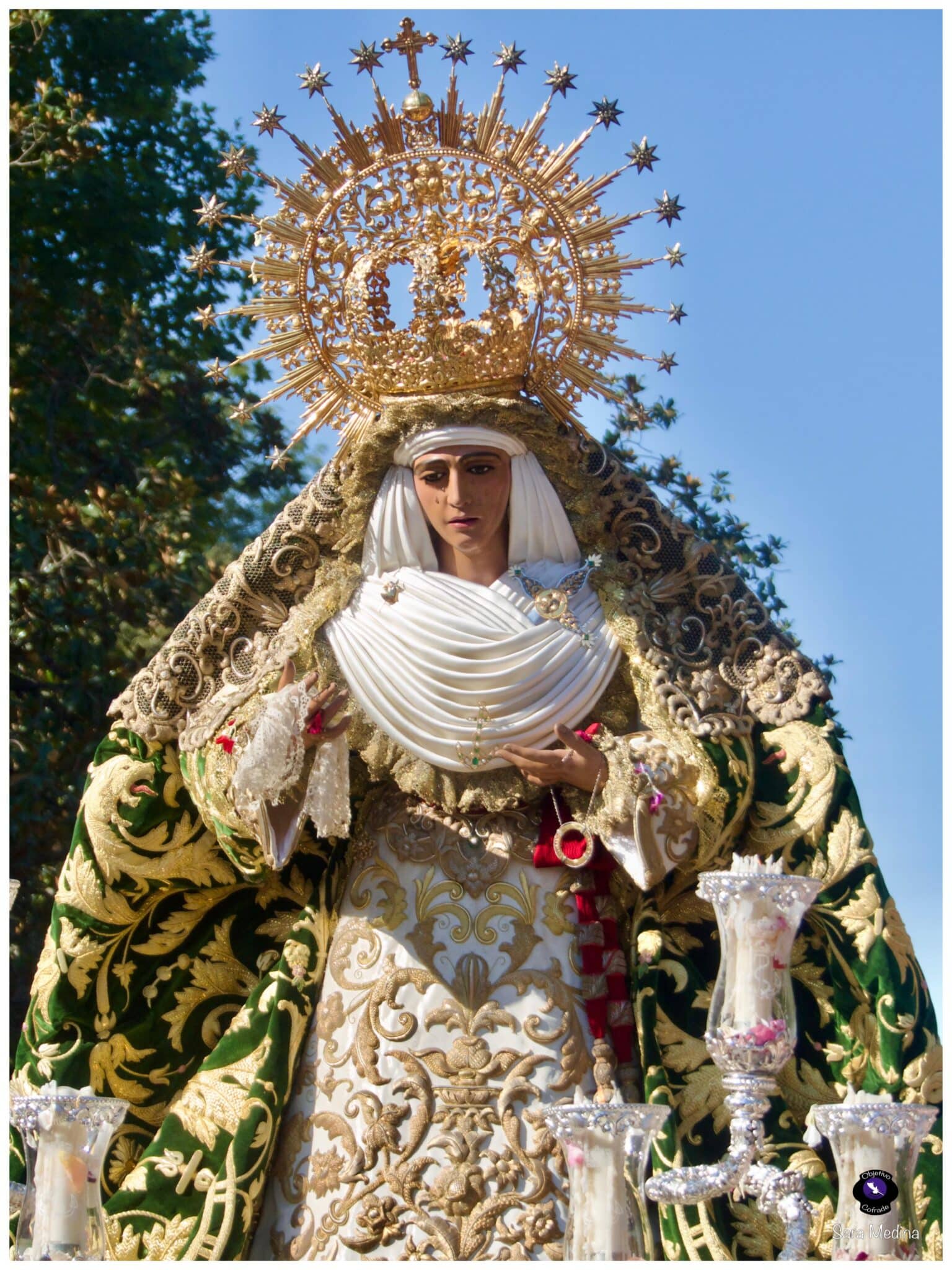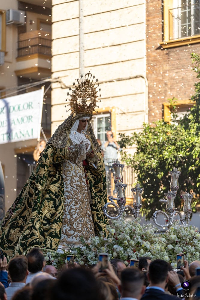 Sevilla, 6 de octubre de 2025. — La jornada del sábado quedará grabada en la memoria de Triana y de toda Sevilla. La Virgen de la Esperanza cruzó el corazón de la ciudad para llegar al barrio de las 3.000 Viviendas, donde permanecerá durante los próximos días dentro de la denominada Misión de la Esperanza.