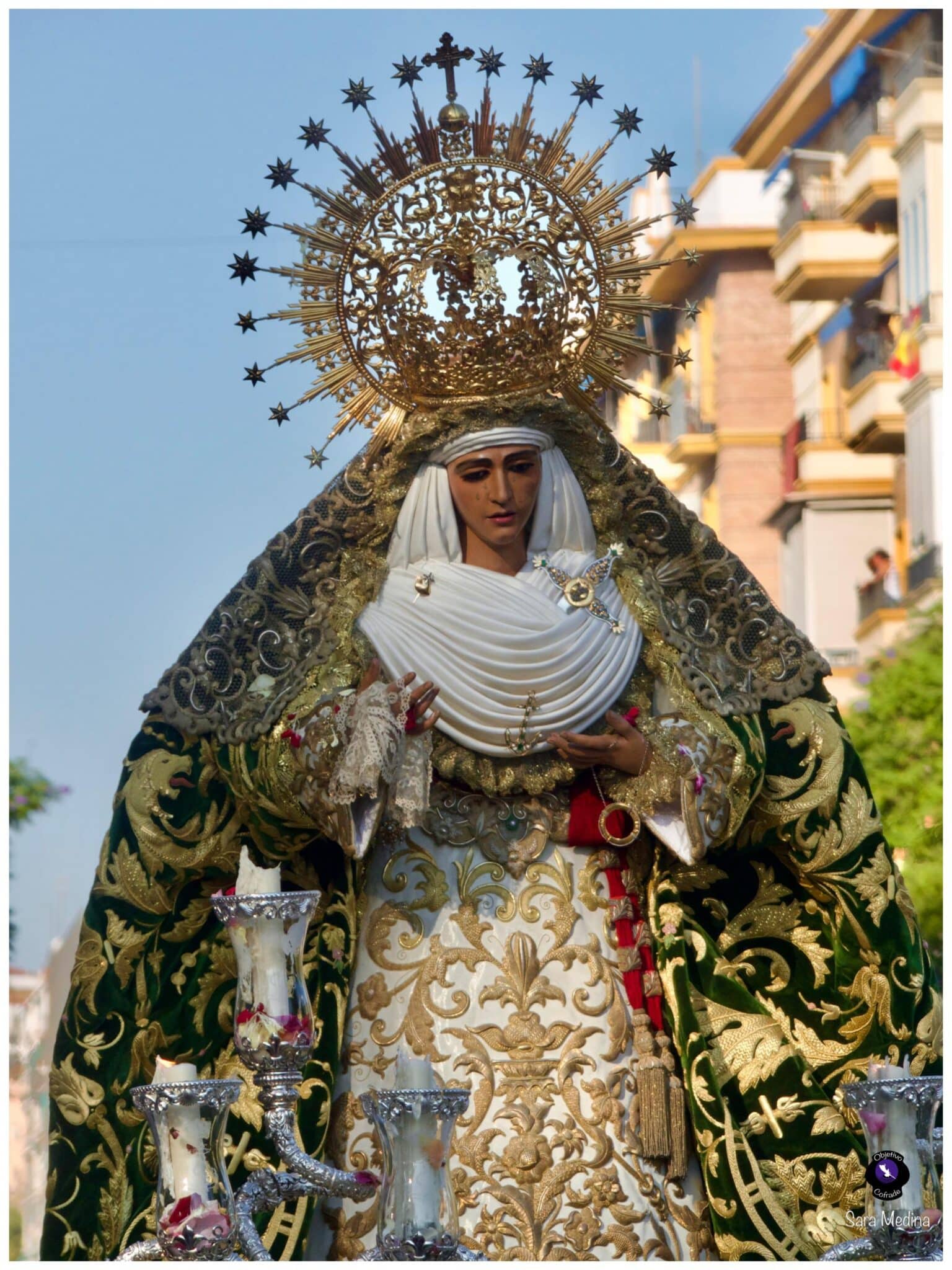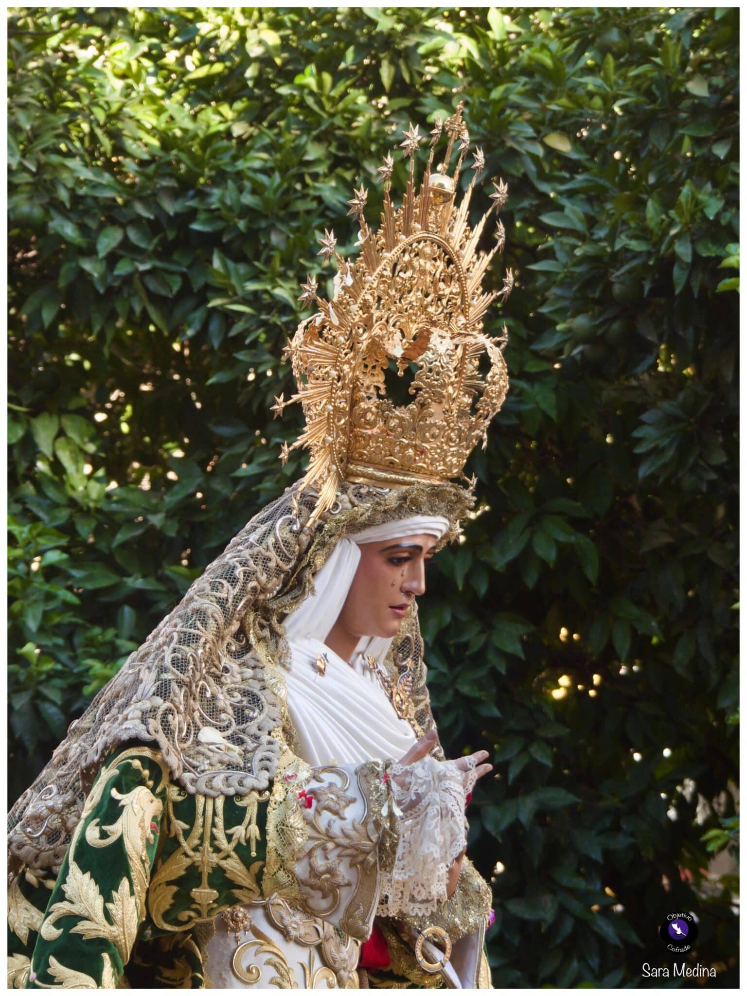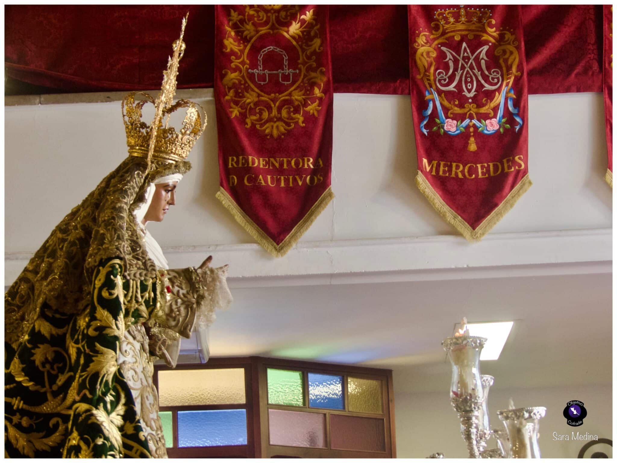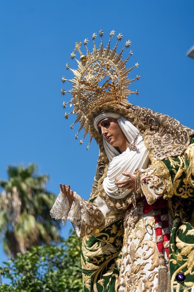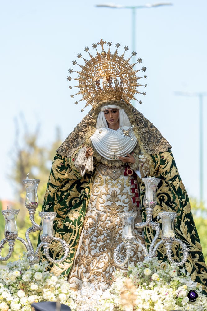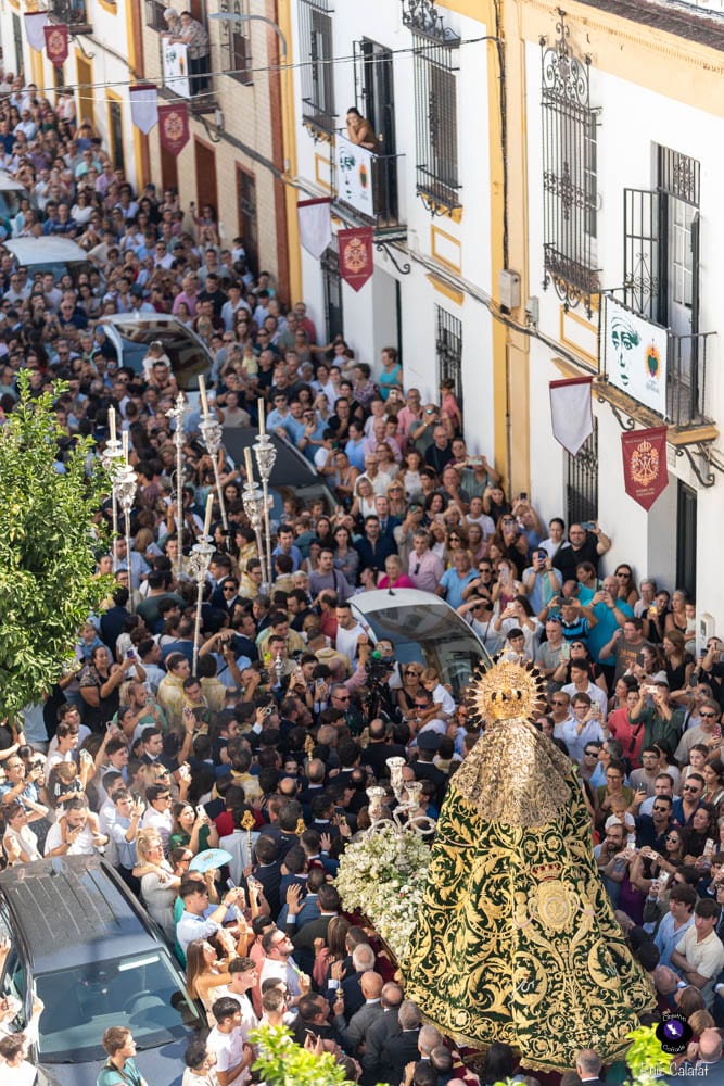 Fue necesario retirar la corona de la imagen para facilitar su entrada, gesto que se vivió con profundo respeto y recogimiento, rompiendo en aplausos cuando le fue retirada la corona. Cuando el paso cruzó el umbral, se vivió otro largo aplauso, símbolo del cariño con el que todo un barrio acogía a la Virgen. Eran las cinco y ocho de la tarde cuando las puertas se cerraron tras la imagen, poniendo fin a un recorrido inolvidable.