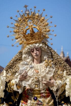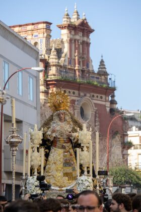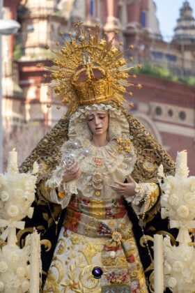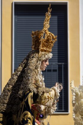 Especialmente emotivo resultó el paso por Rodrigo de Triana, donde no faltaron las tradicionales petaladas dedicadas a la dolorosa. El regreso a la capilla, engalanada con motivo del aniversario que conmemora la corporación, se produjo pasado el mediodía, culminando así unos días intensos de cultos que han vuelto a reunir a la hermandad en torno a sus Titulares.