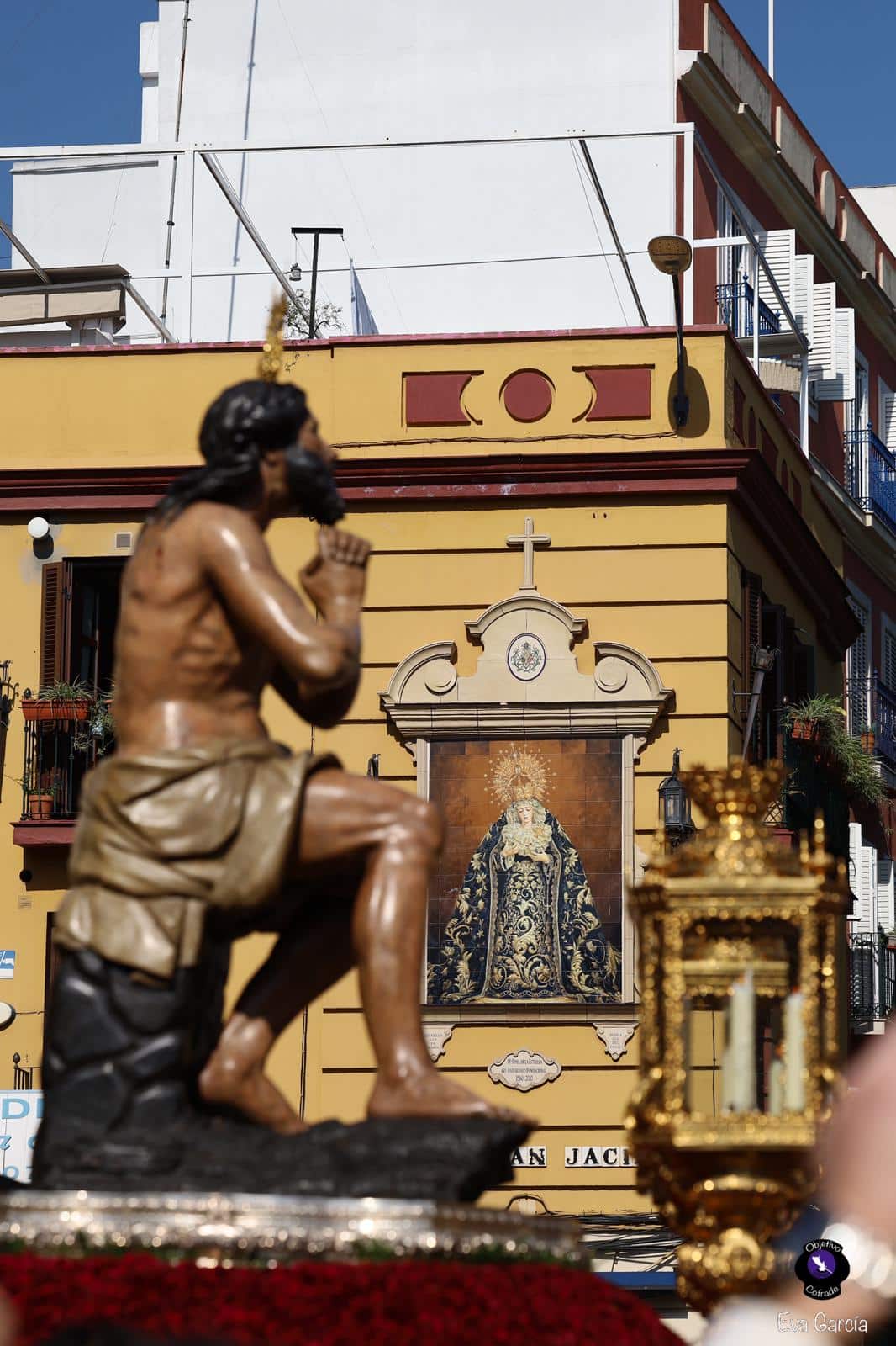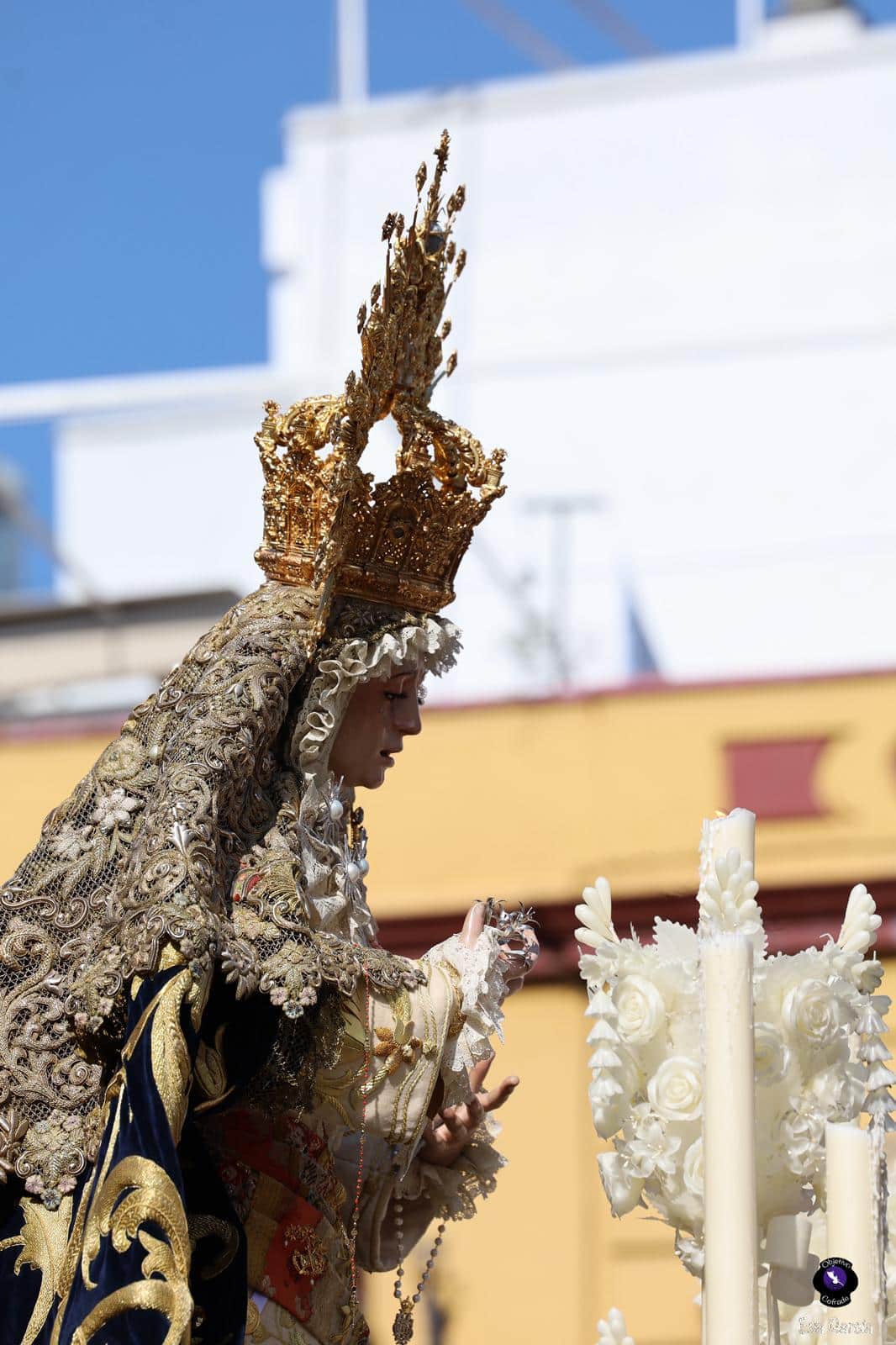 La jornada del pasado domingo dejó en Triana una de esas estampas que permanecen en la memoria colectiva del barrio. La Hermandad de la Estrella efectuó el solemne traslado de Nuestro Padre Jesús de las Penas y María Santísima de la Estrella desde la Parroquia de San Jacinto hasta su capilla, poniendo así el broche a los cultos celebrados durante la pasada semana.