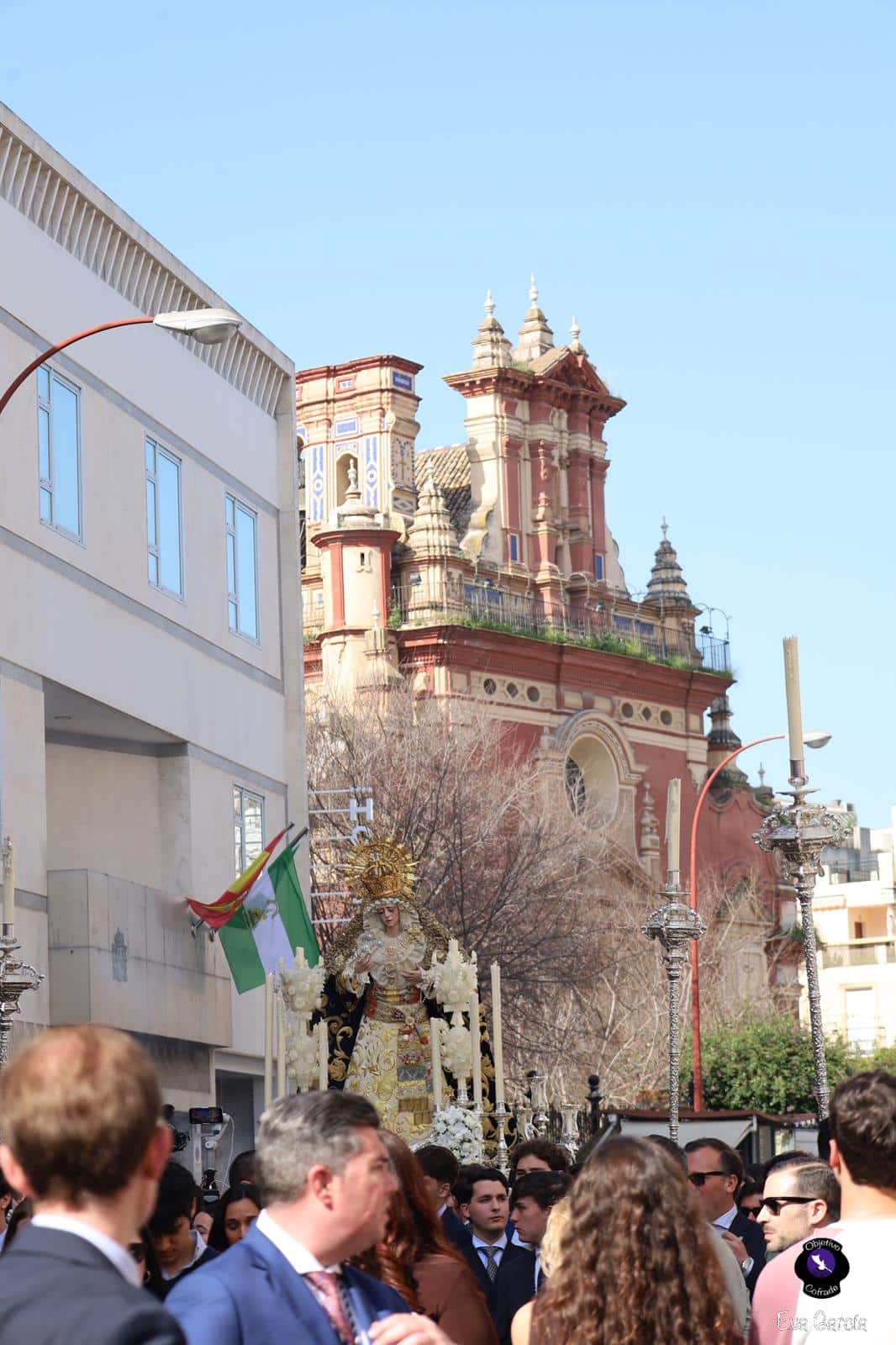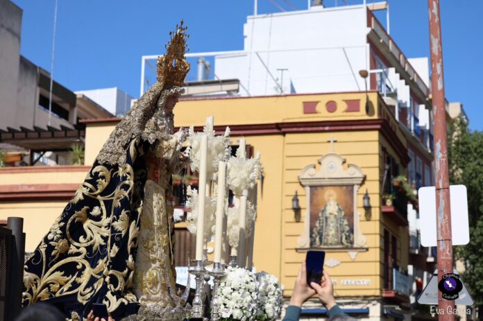 El cortejo partió desde el templo parroquial, en la calle Pagés del Corro, recorriendo Victoria, Rodrigo de Triana y San Jacinto hasta alcanzar su sede canónica. Numerosos hermanos y fieles acompañaron a los Sagrados Titulares en un ambiente de recogimiento y cercanía, en una mañana marcada por la buena climatología.