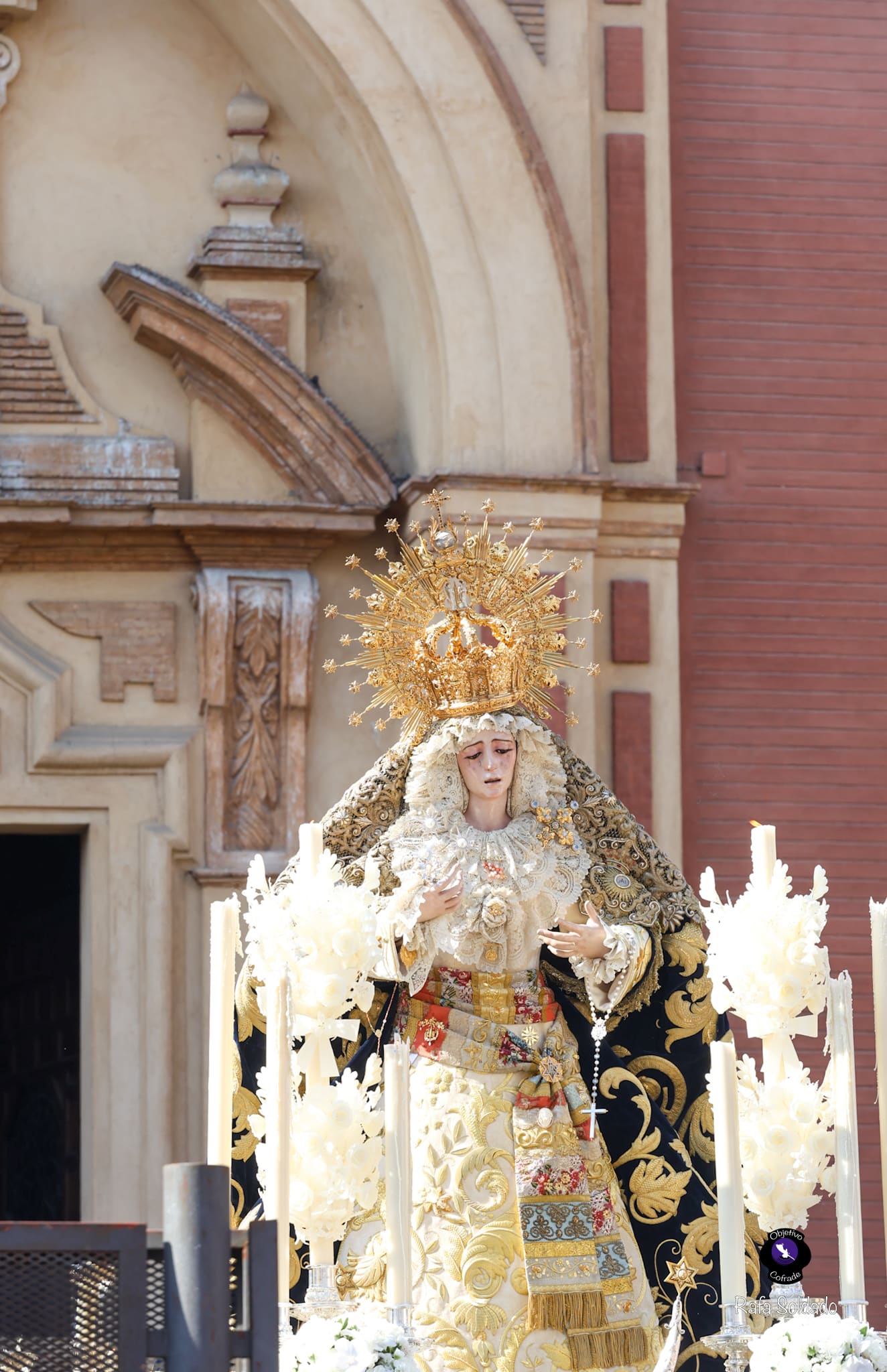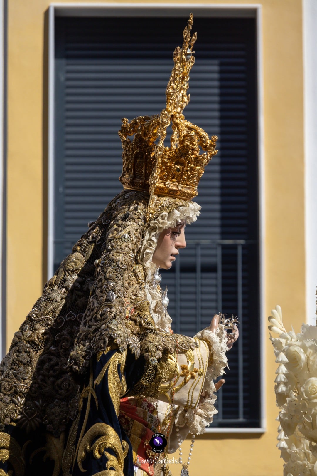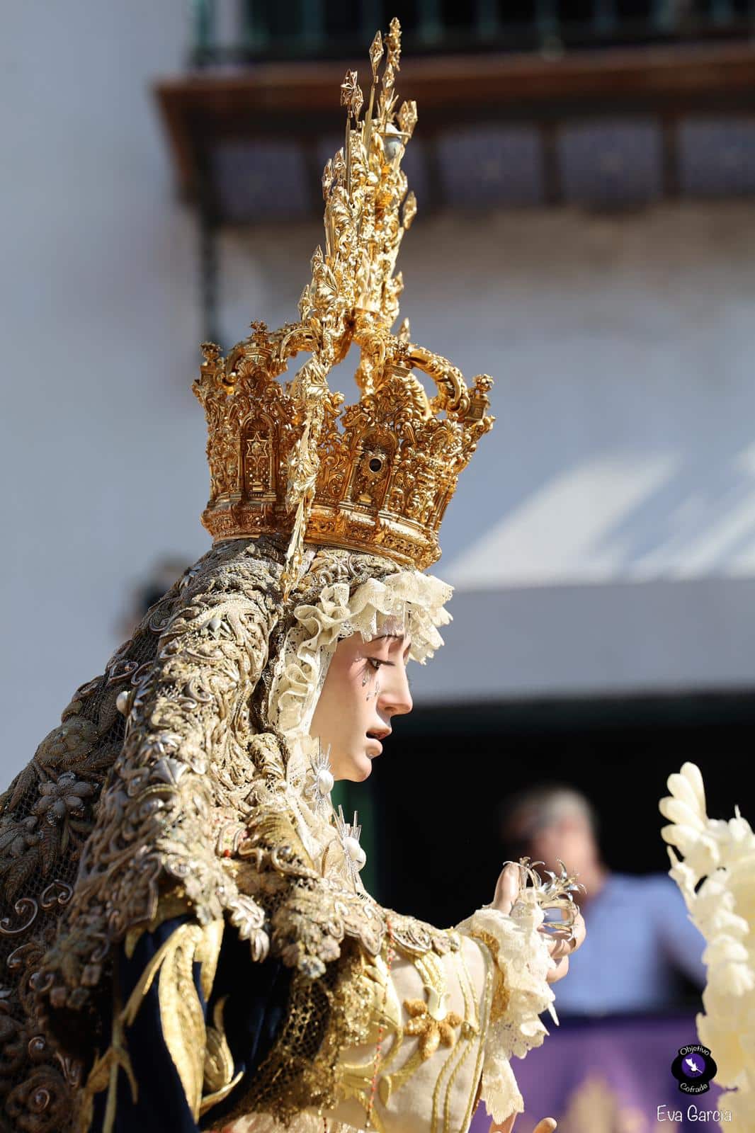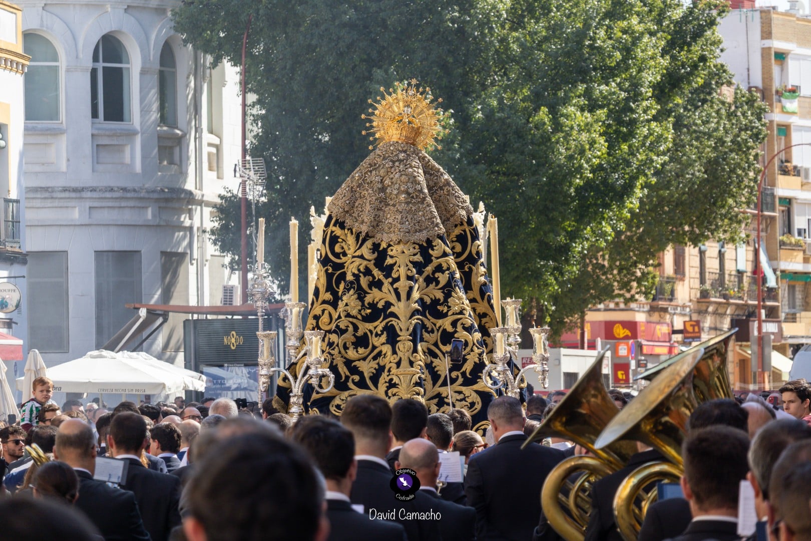 La Sociedad Filarmónica Nuestra Señora de la Oliva de Salteras acompañó musicalmente el traslado, interpretando sus marchas tras el paso de la Virgen, dejando patente su nivel interpretativo en cada compás. A la salida se escucharon aplausos y vítores, mientras el cortejo avanzaba entre un público que llenaba las calles del barrio.