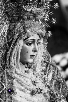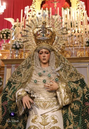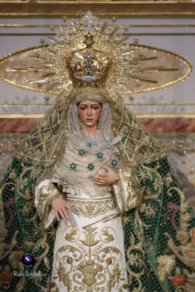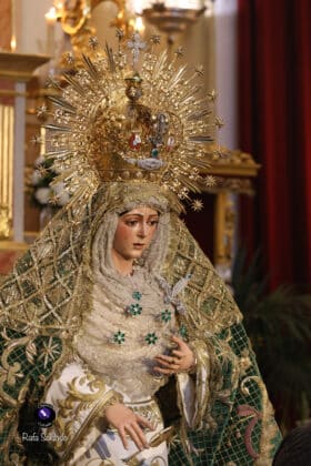 Para esta ocasión tan especial, la Hermandad también ha cuidado con esmero el atavío de la Virgen, reproduciendo el que lució durante su estancia en San Gil en 1925, cuando José Castro fue el encargado de vestirla. Esta recreación sirve igualmente como reconocimiento a la figura de Juan Manuel Rodríguez Ojeda, cuya huella artística permanece íntimamente ligada a la iconografía de la Esperanza. Su búsqueda de naturalidad y expresividad, heredera de tradiciones anteriores, definió una estética que aún hoy sigue siendo referente.