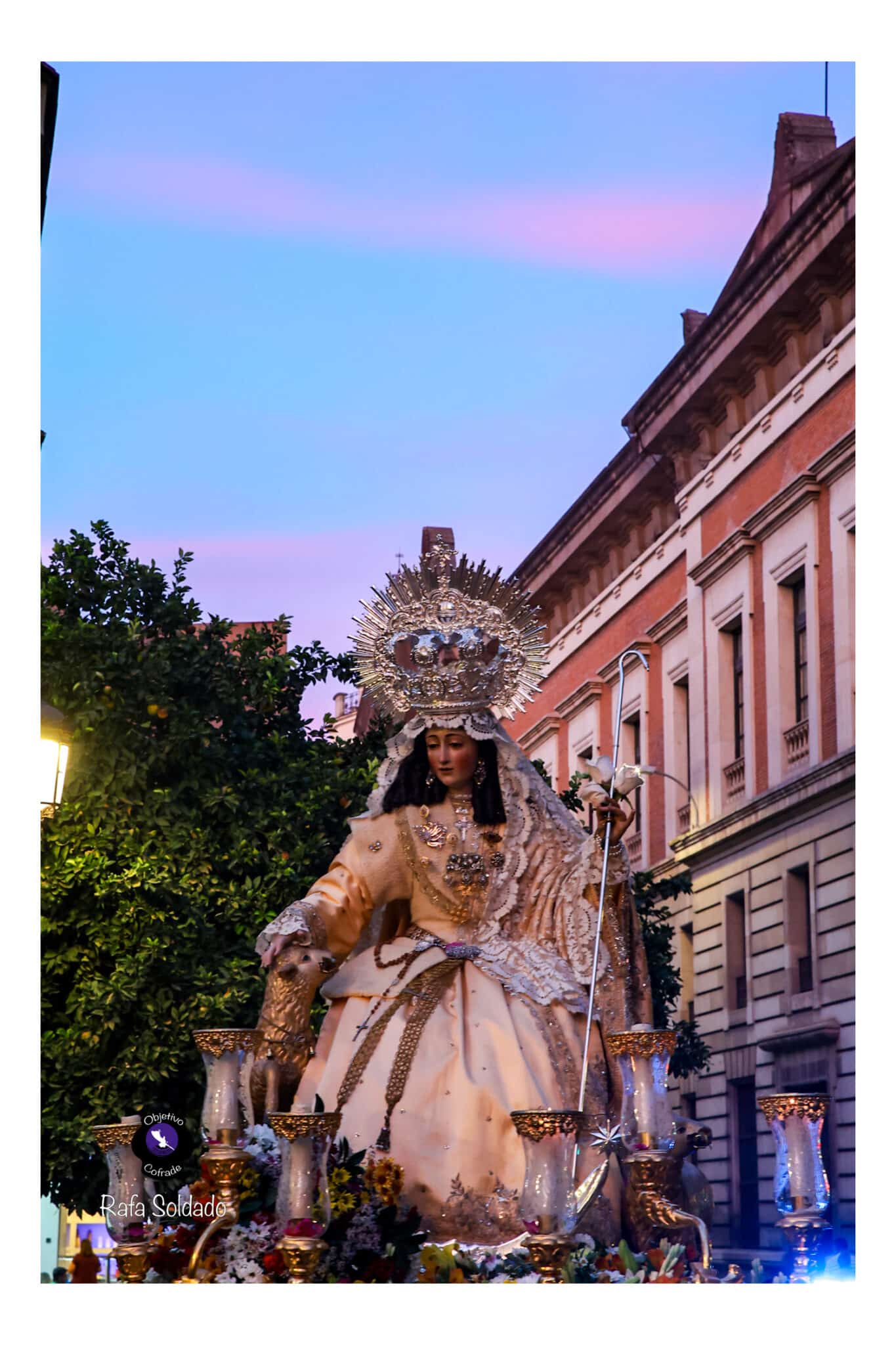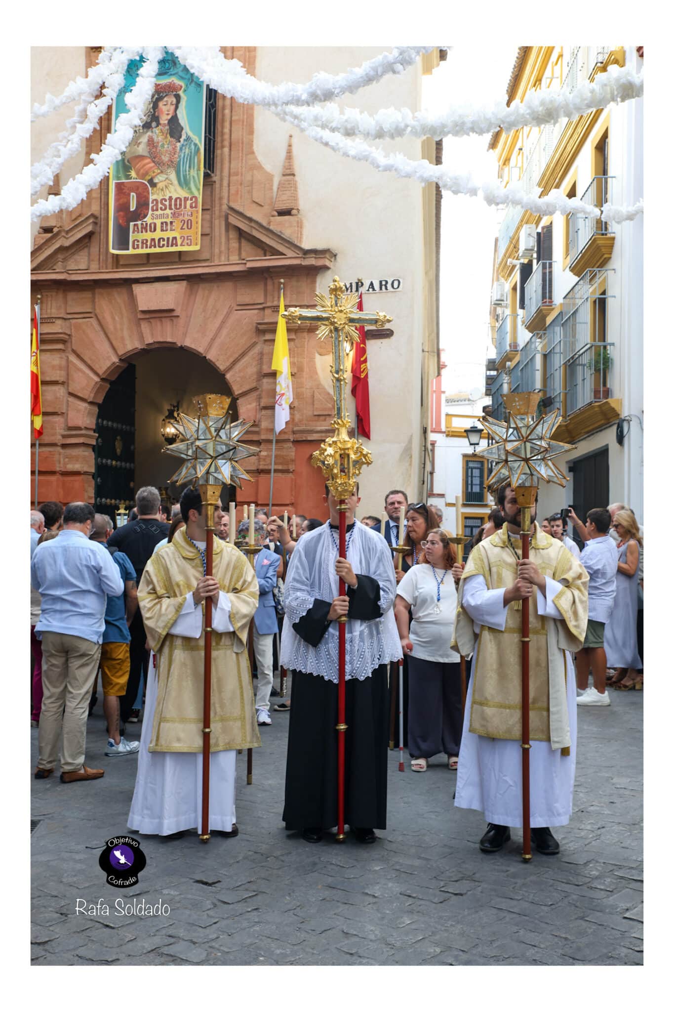La Divina Pastora de Nuestras Almas de Santa Marina recorrió las calles del barrio en su traslado a la Parroquia de San Pedro en el atardecer del último día de Agosto, dando inicio así, a los cultos previos a su Coronación.