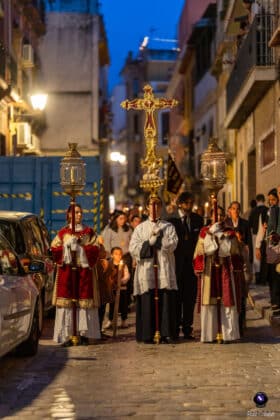 Con el cielo cayendo sobre las fachadas del barrio y los balcones engalanados, la Reina de Todos los Santos avanzó majestuosa por calles estrechas y llenas de historia, llevando consigo una devoción que atraviesa generaciones.