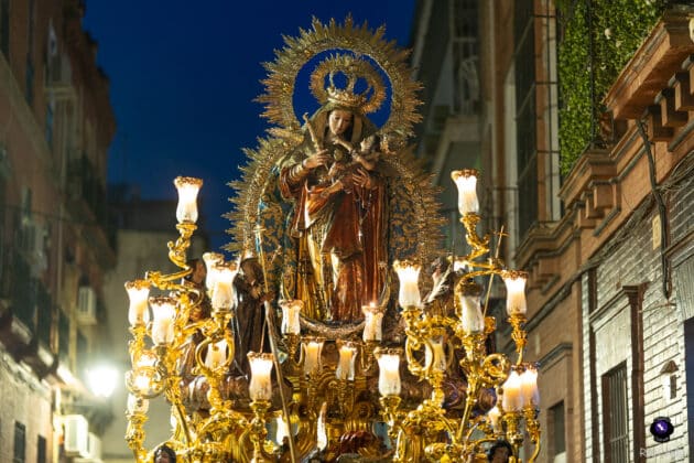 En una tarde marcada por la emoción y la tradición, la Reina de Todos los Santos volvió a recorrer las calles de su feligresía desde la Parroquia de Ómnium Sanctorum, en una cita muy esperada por los vecinos y cofrades del barrio de la Feria.