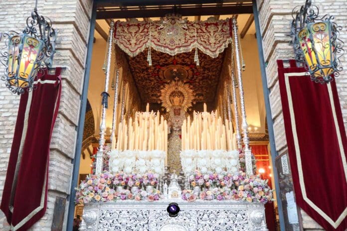 Castilleja de la Cuesta, 14 de agosto de 2025. La localidad aljarafeña vivió una jornada histórica con la salida extraordinaria de Nuestra Señora de la Soledad Coronada, titular de la Hermandad Sacramental de Santiago Apóstol, con motivo del 75.º aniversario de la proclamación del Dogma de la Asunción de la Virgen.
