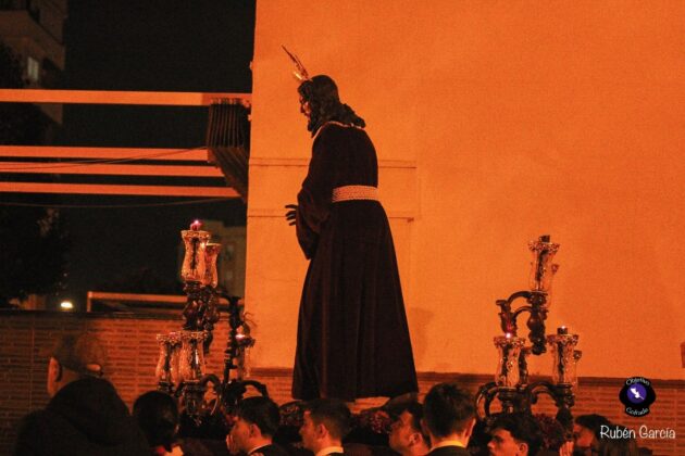 Como detalle significativo, el Señor volvió a presentarse con las manos atadas, evocando la estampa con la que recorrió parte del barrio en 2013 tras su llegada a Sevilla Este, antes de su primera salida procesional.