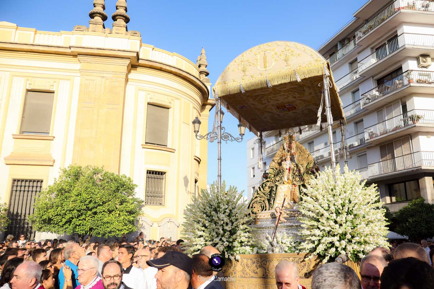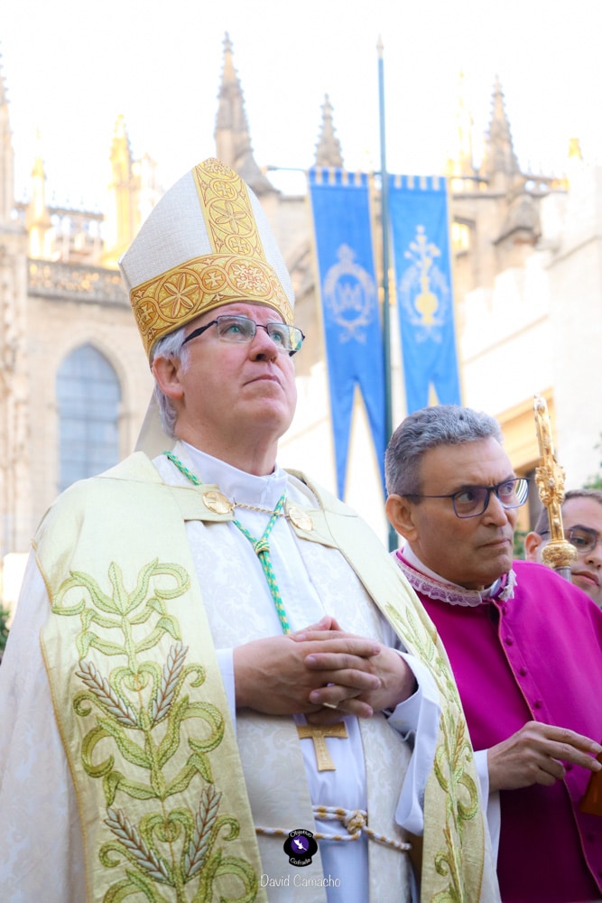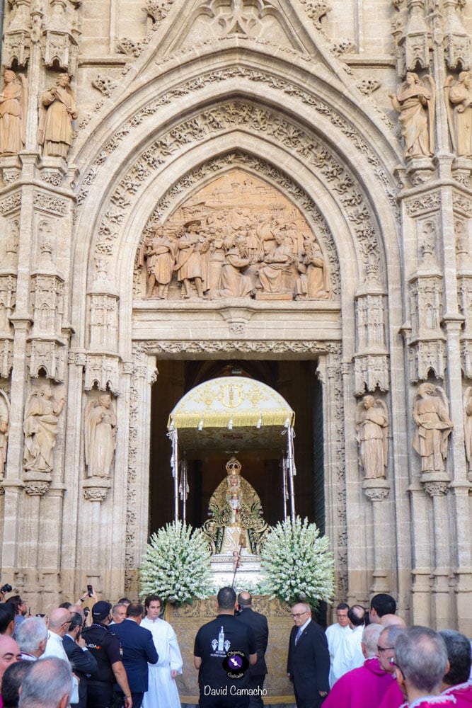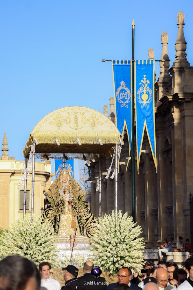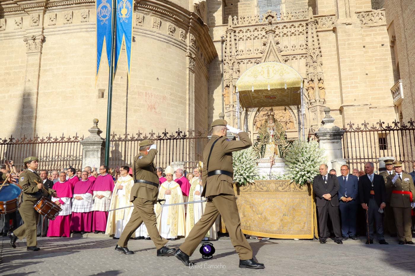 El recorrido, como es costumbre, discurrió por las gradas bajas de la Catedral: Plaza Virgen de los Reyes, Cardenal Carlos Amigo, Alemanes, Avenida de la Constitución, Fray Ceferino González, Plaza del Triunfo y regreso al templo metropolitano. Todo medido con precisión, en poco más de hora y media de tránsito en la que la Patrona estuvo acompañada por autoridades eclesiásticas, representantes civiles y militares, así como por la Banda Sinfónica Municipal, encargada de poner música al cortejo.