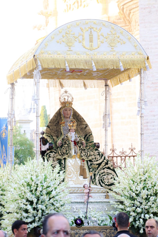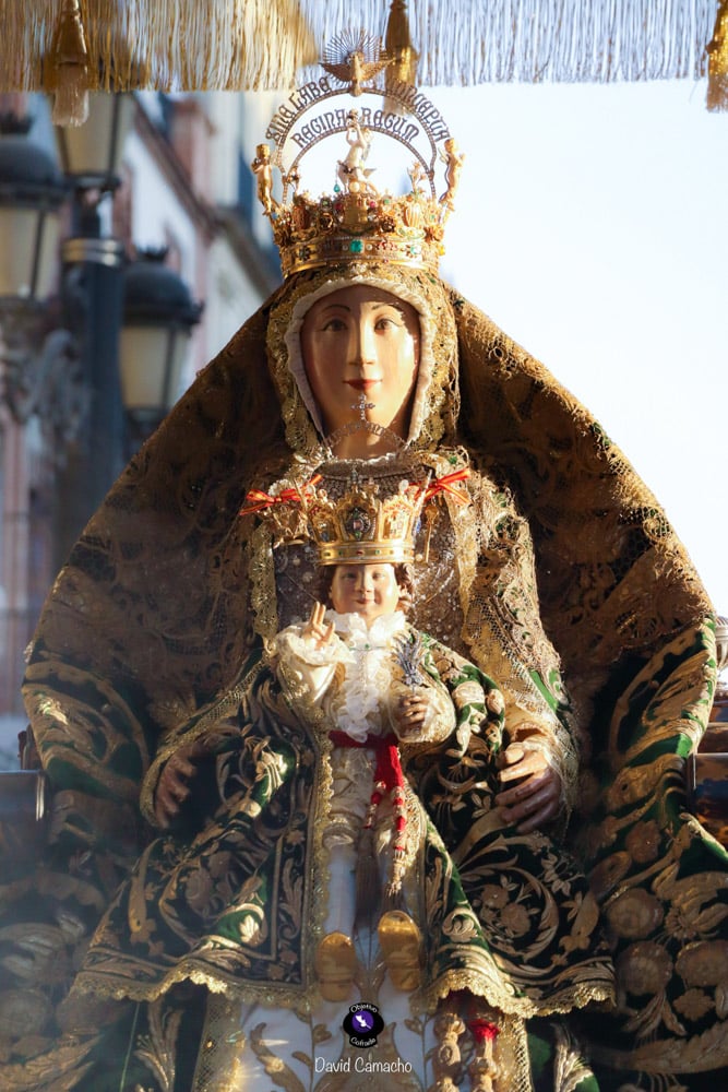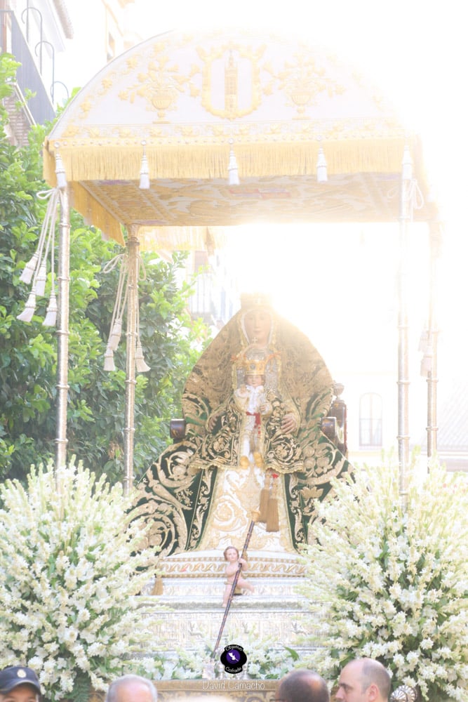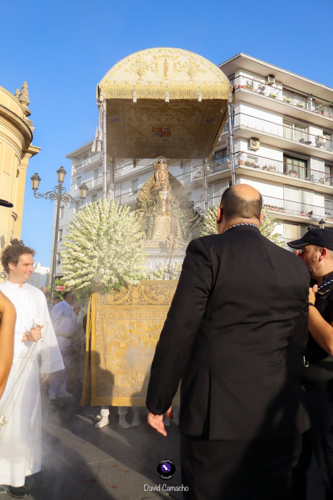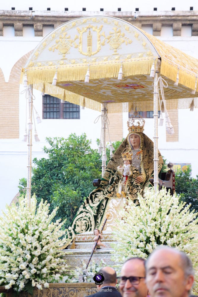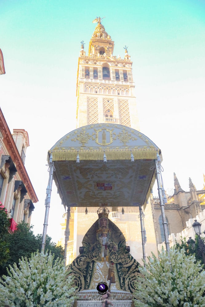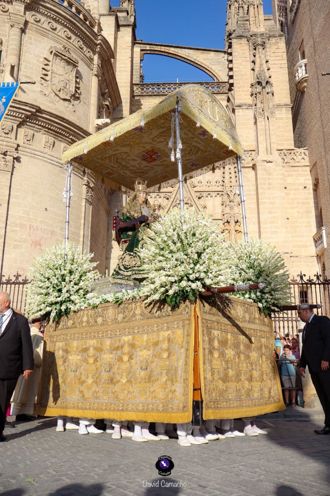 El recorrido, como es costumbre, discurrió por las gradas bajas de la Catedral: Plaza Virgen de los Reyes, Cardenal Carlos Amigo, Alemanes, Avenida de la Constitución, Fray Ceferino González, Plaza del Triunfo y regreso al templo metropolitano. Todo medido con precisión, en poco más de hora y media de tránsito en la que la Patrona estuvo acompañada por autoridades eclesiásticas, representantes civiles y militares, así como por la Banda Sinfónica Municipal, encargada de poner música al cortejo.