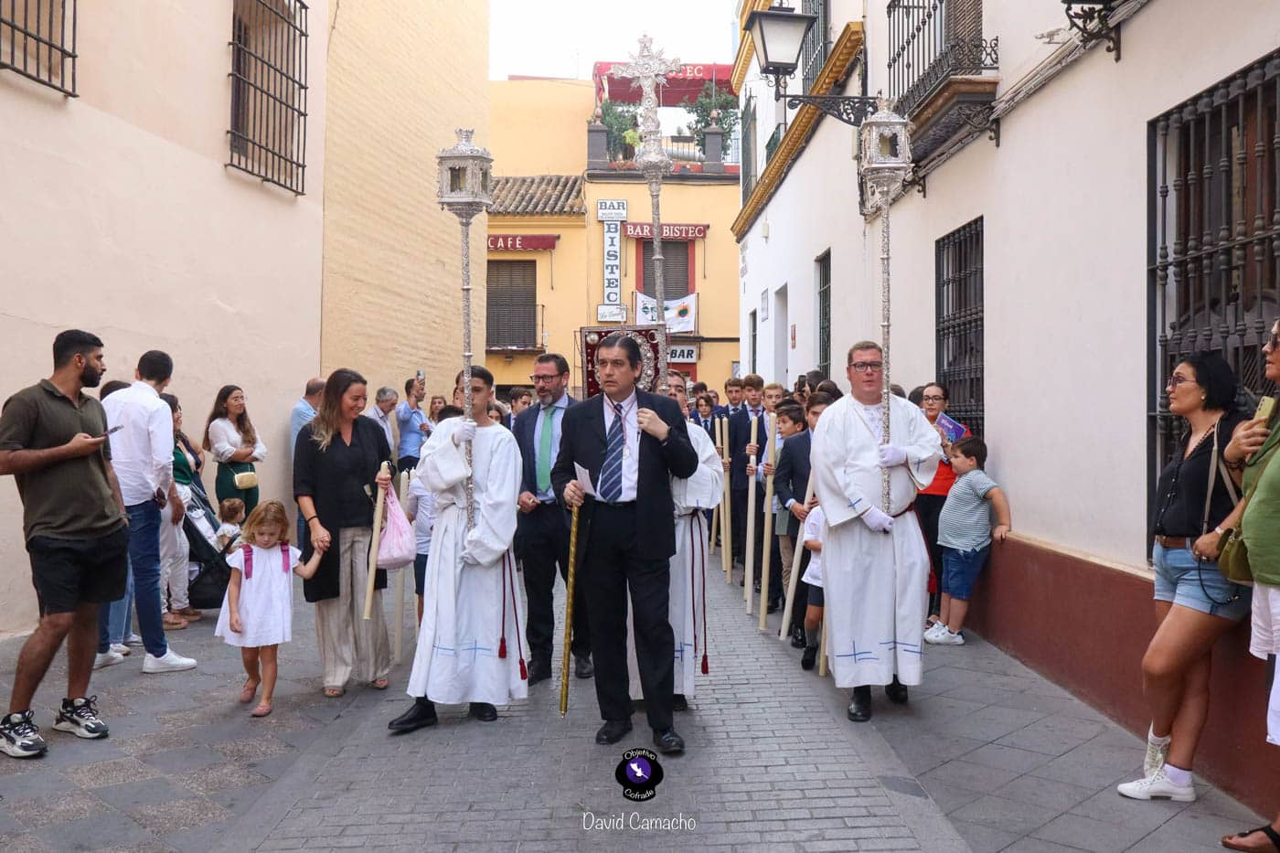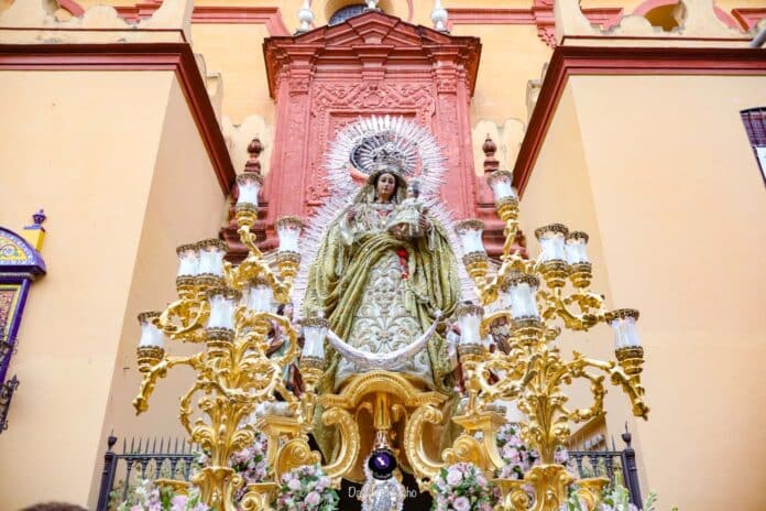 El barrio de Triana volvió a vestirse de gala en la tarde de ayer sábado 12 de octubre para acompañar a Madre de Dios del Rosario, patrona de los capataces y costaleros, en su tradicional salida procesional. La imagen, que cada año recorre las calles trianeras en la festividad del Pilar, volvió a congregar a centenares de devotos en una jornada llena de fe, emoción y sonido clásico sevillano.