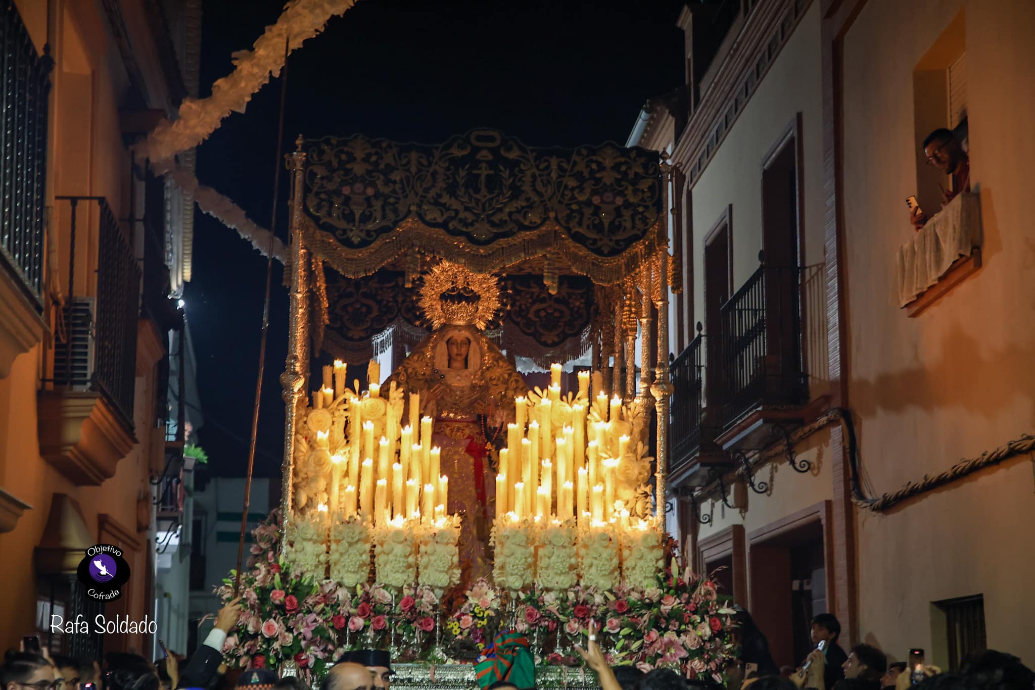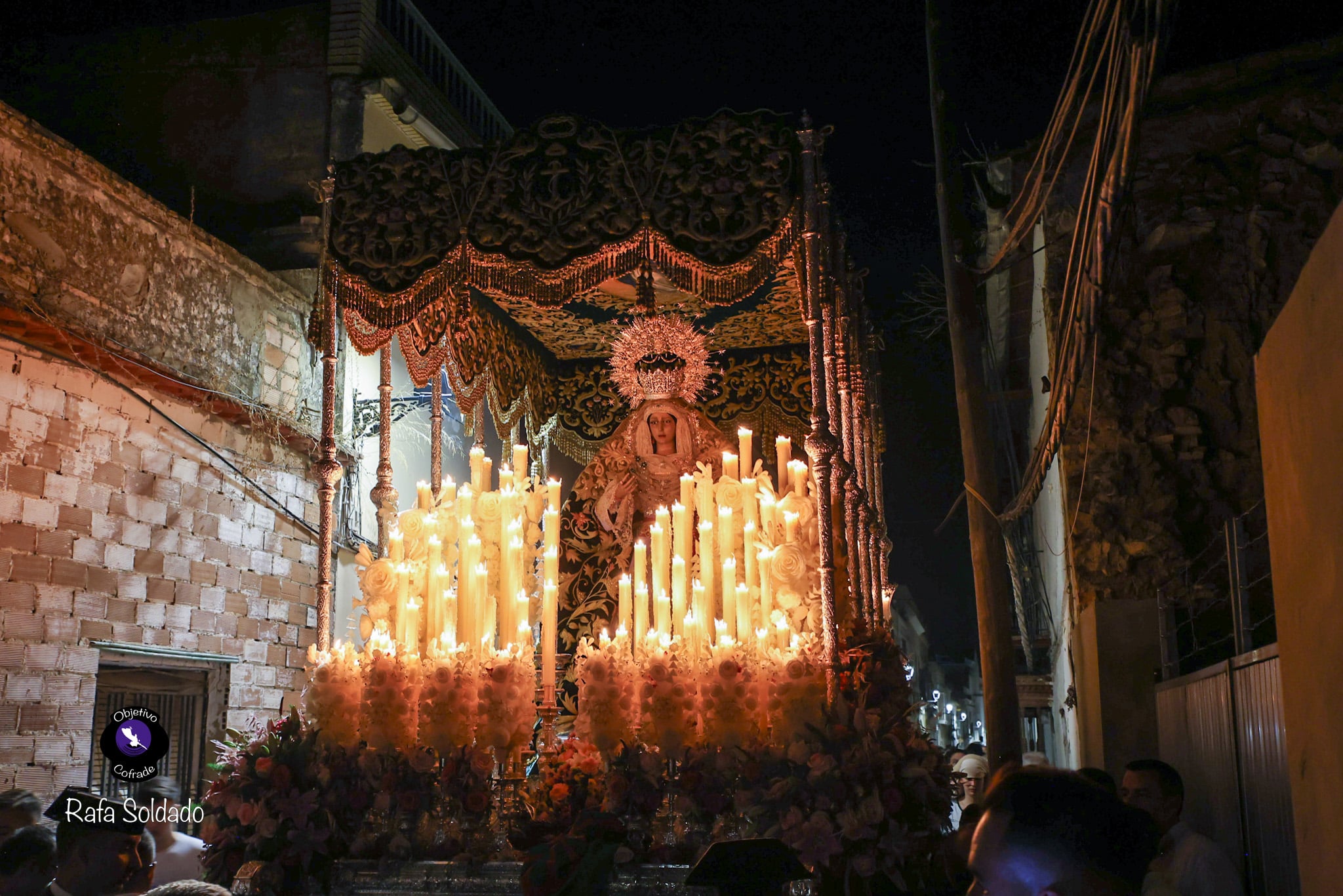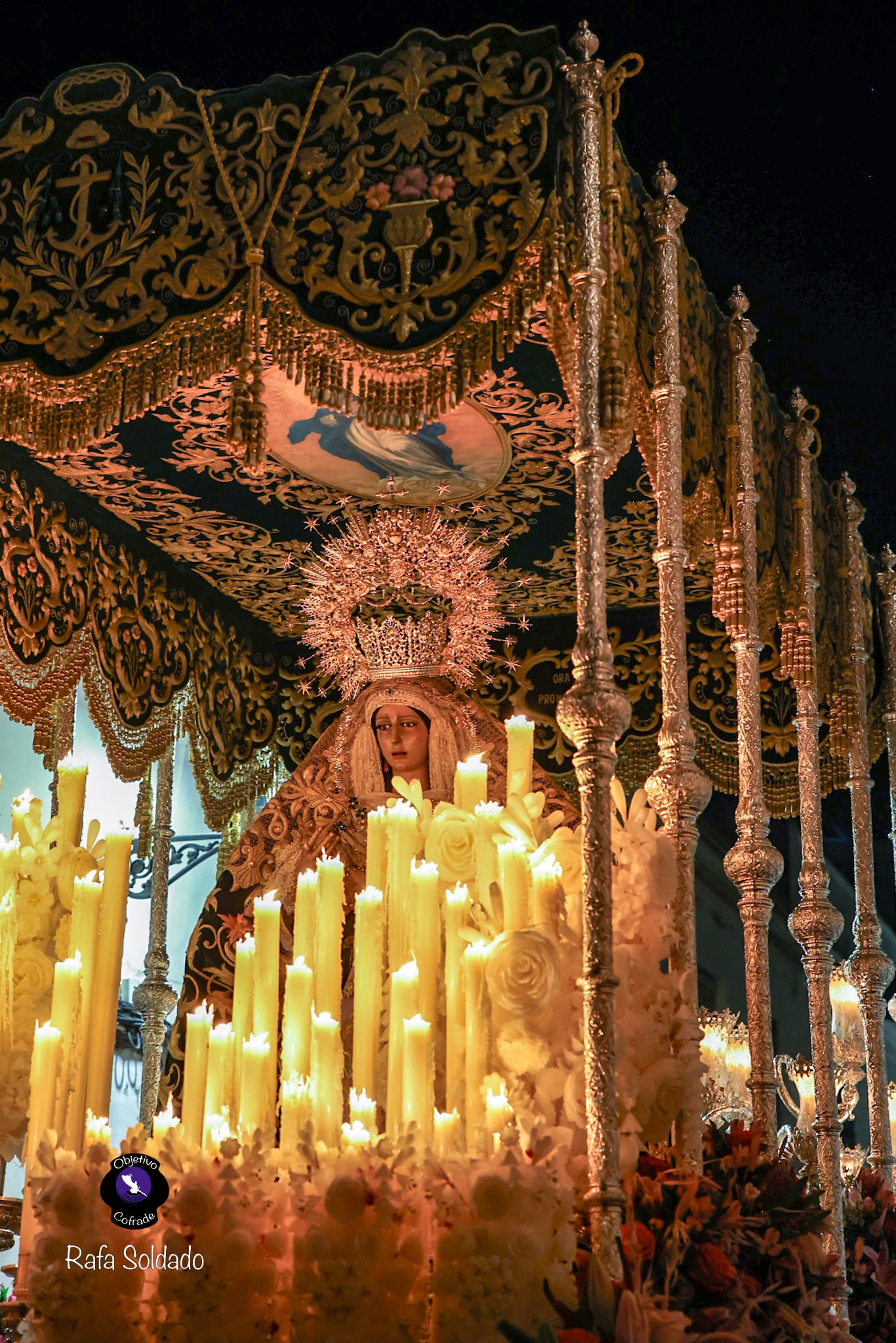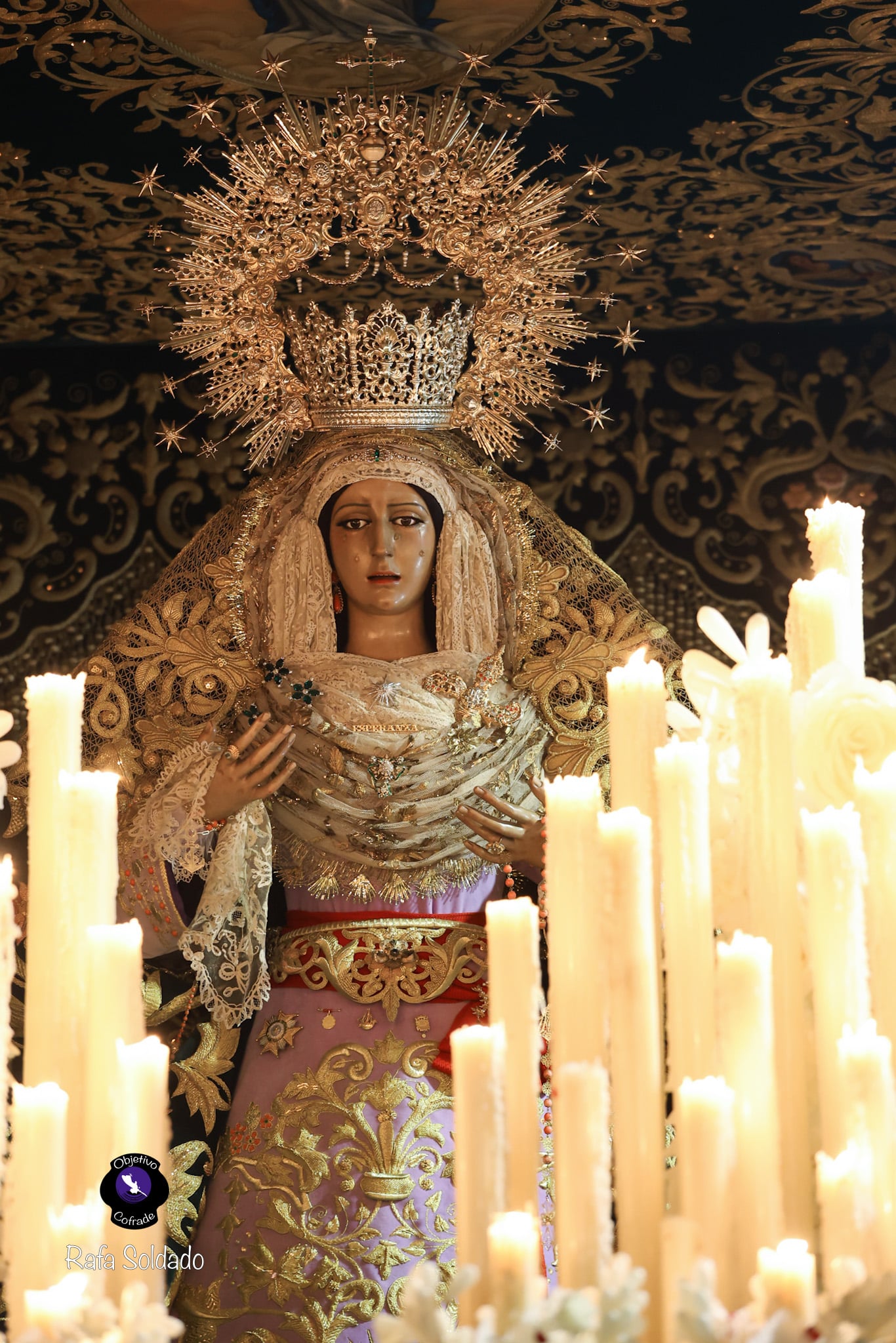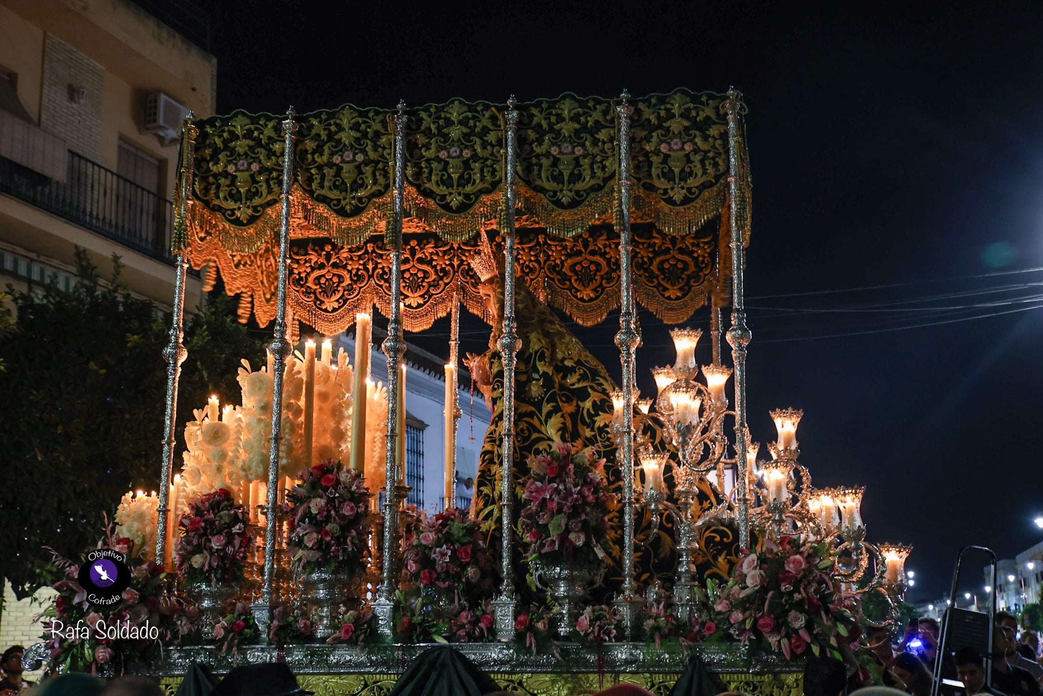 La dolorosa estrenó una saya de terciopelo malva bordada en oro entrefino con corales, obra dirigida por Joaquín Salcedo, además de un exorno floral diseñado por Francisco Marrufo, en el que destacaron rosas, lilium, proteas y romero. También se incorporó un llamador con la impronta de Fernando y Bernarda de Utrera, todo ello enmarcado en un paso que fue admirado por miles de devotos.