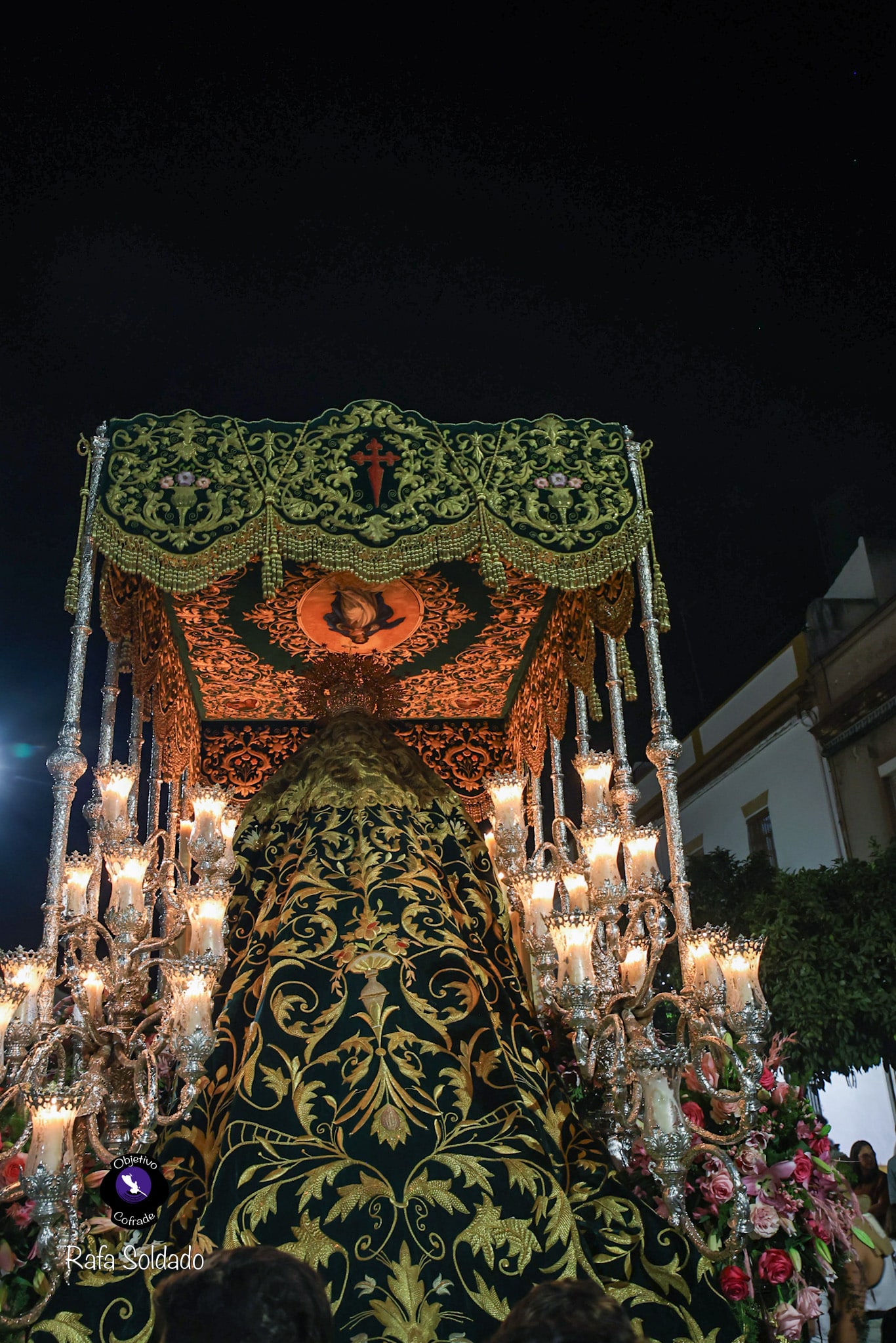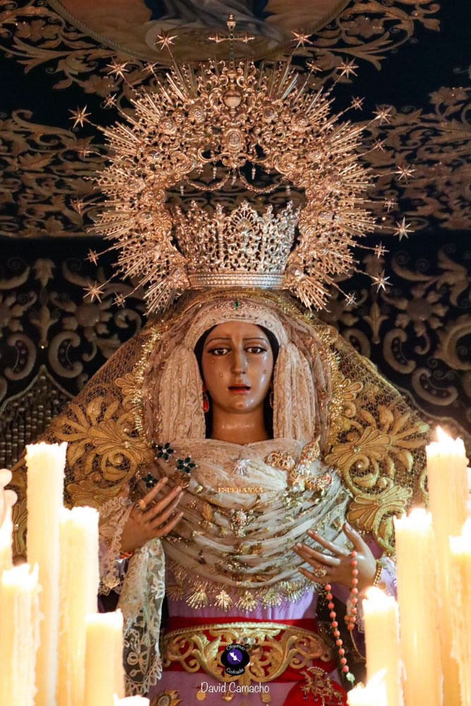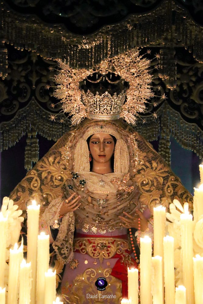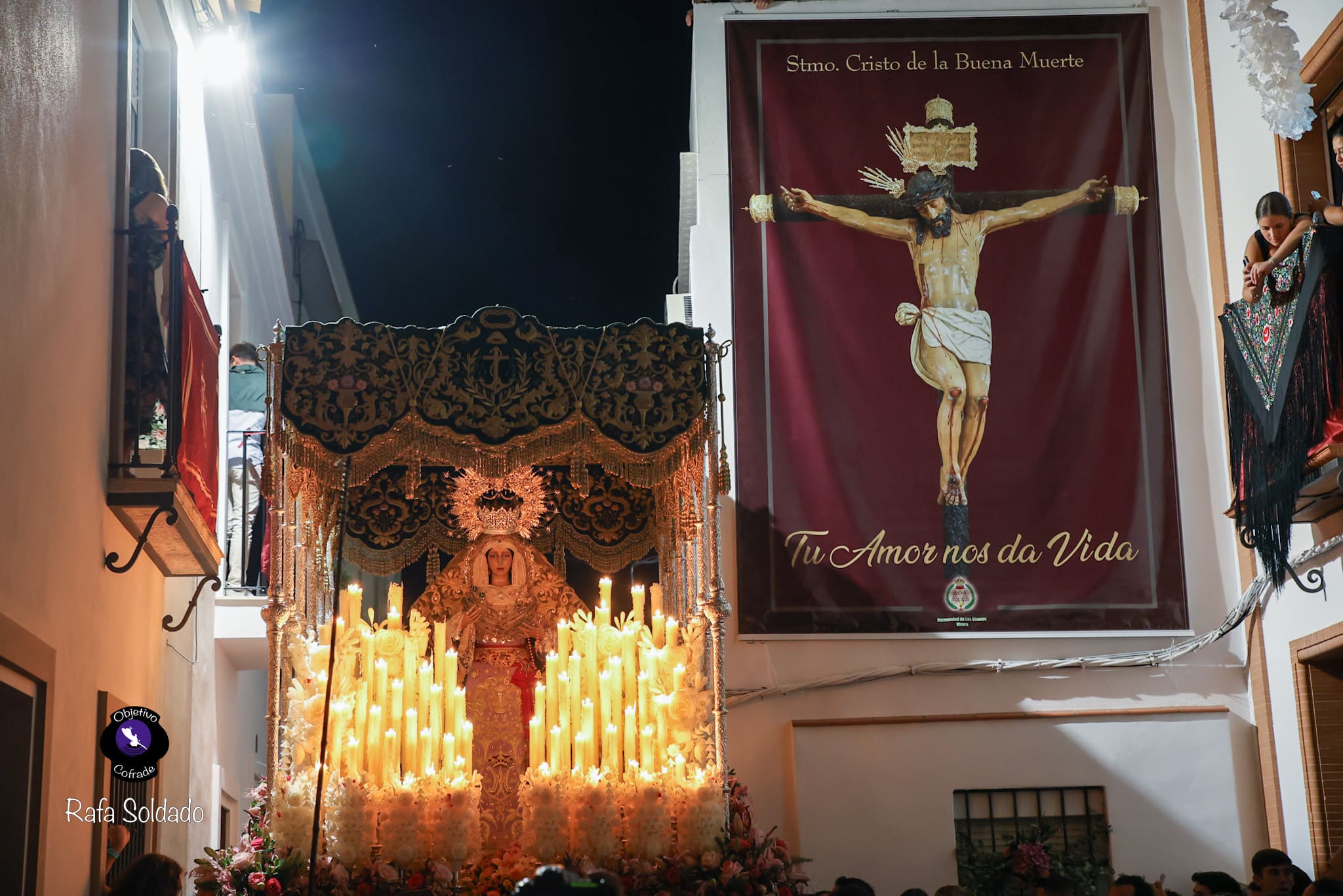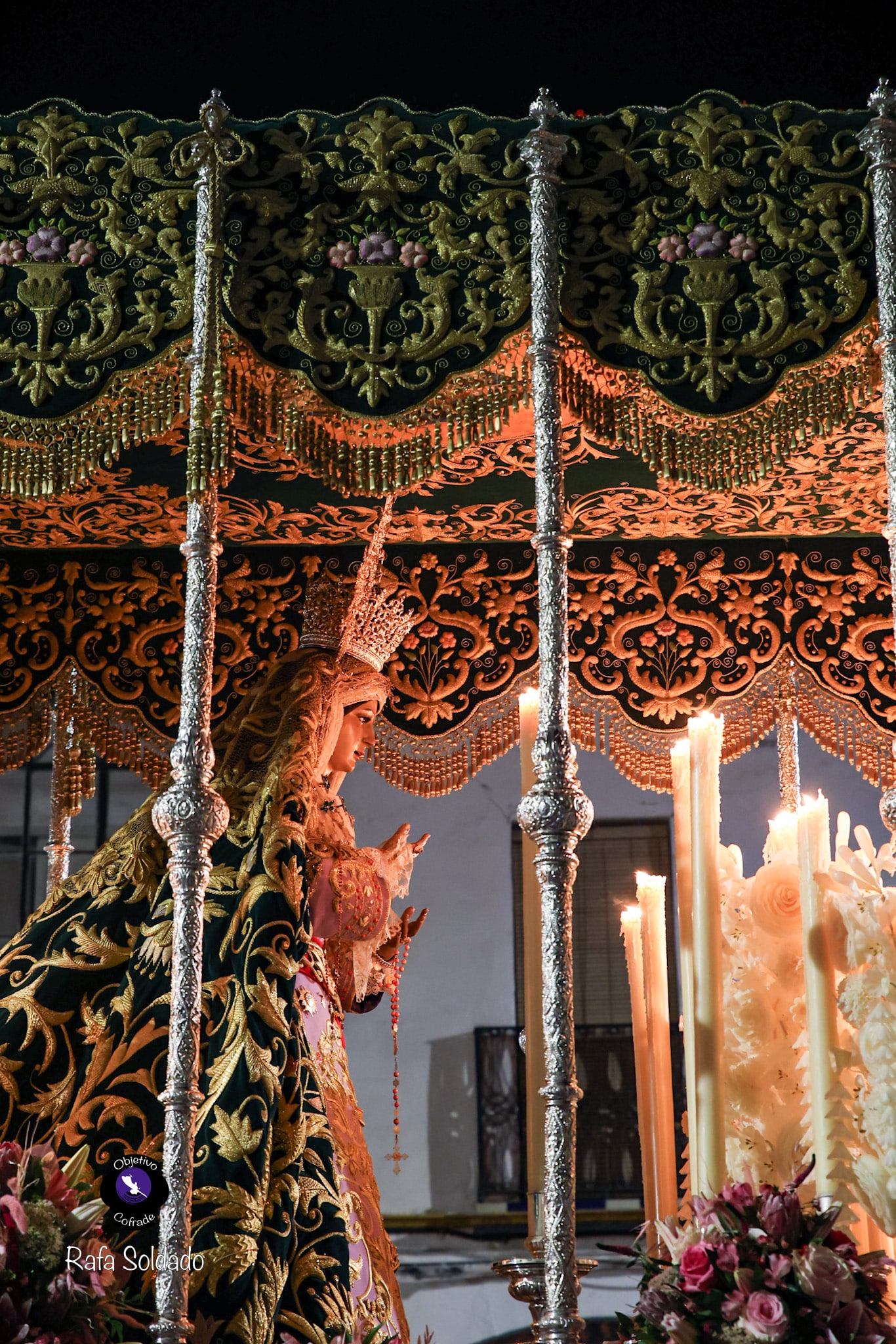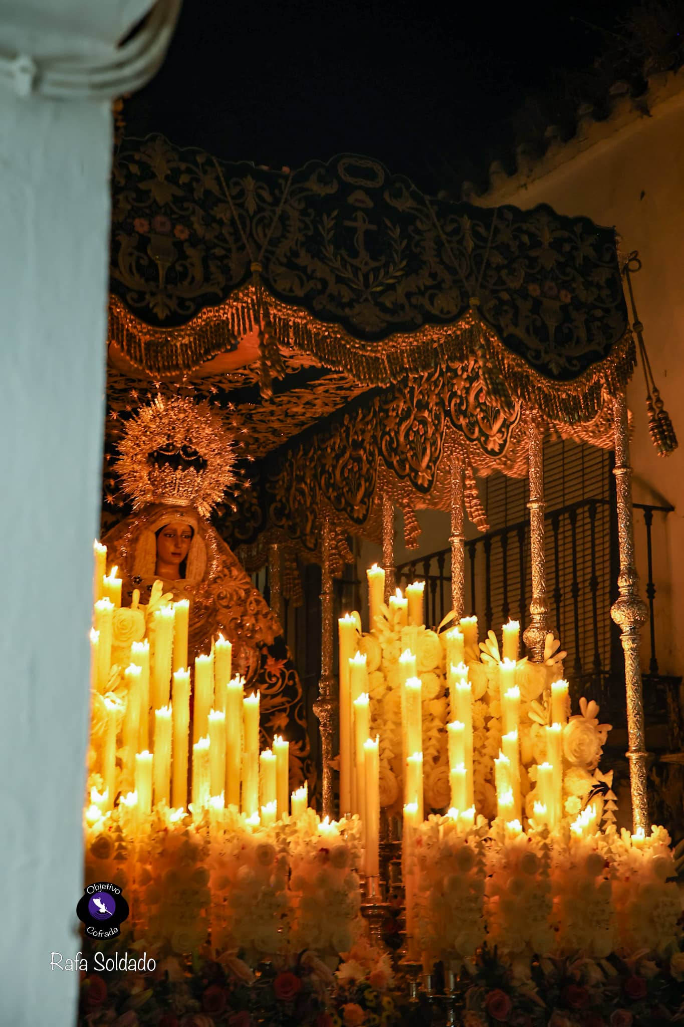 La dolorosa estrenó una saya de terciopelo malva bordada en oro entrefino con corales, obra dirigida por Joaquín Salcedo, además de un exorno floral diseñado por Francisco Marrufo, en el que destacaron rosas, lilium, proteas y romero. También se incorporó un llamador con la impronta de Fernando y Bernarda de Utrera, todo ello enmarcado en un paso que fue admirado por miles de devotos.