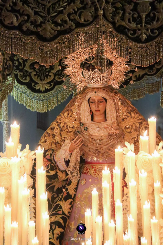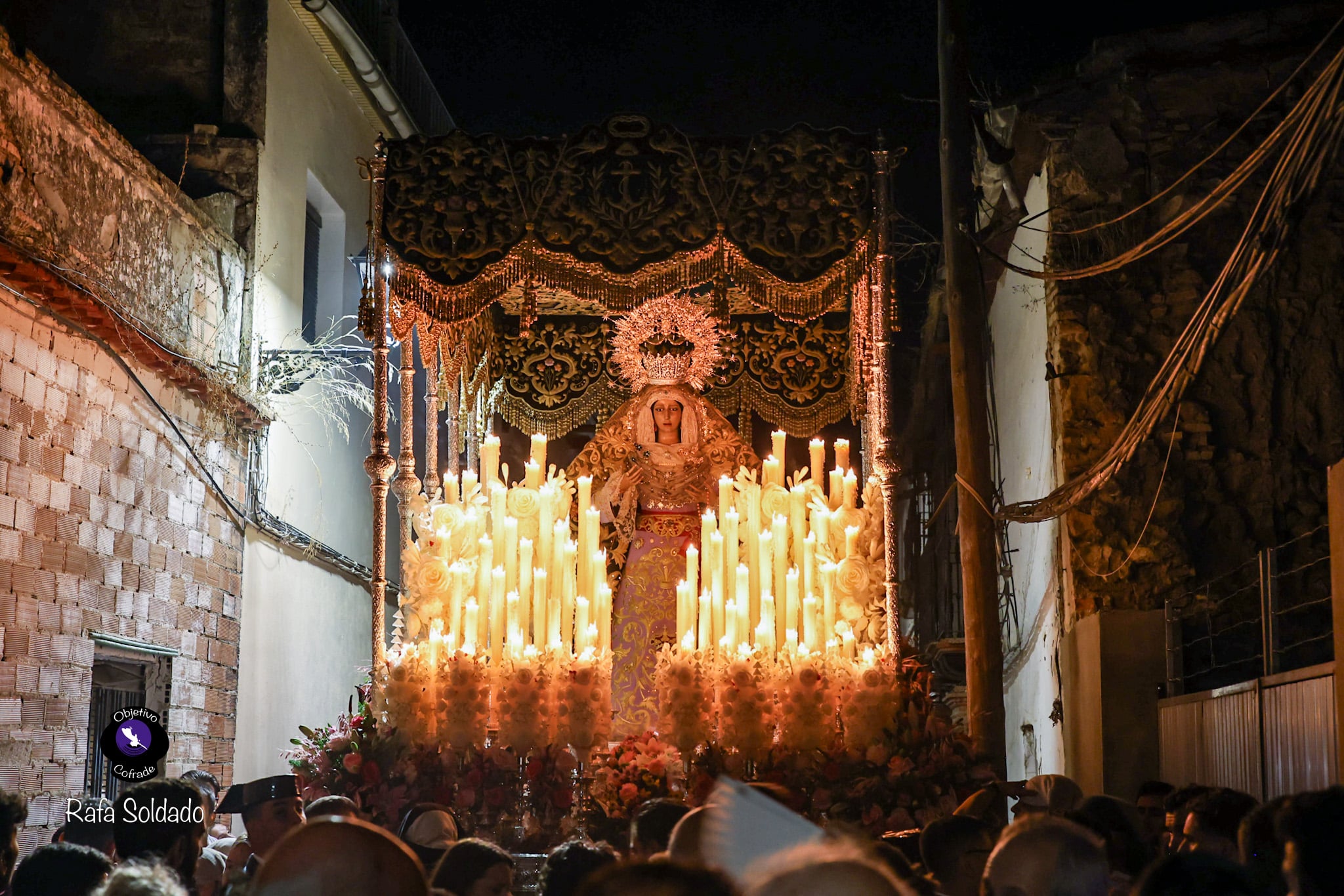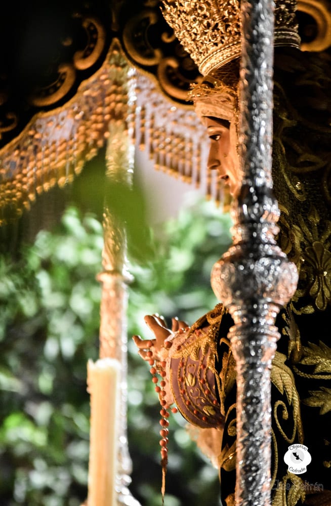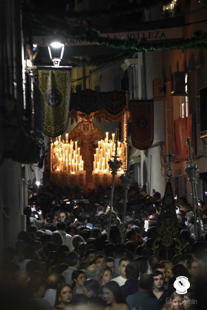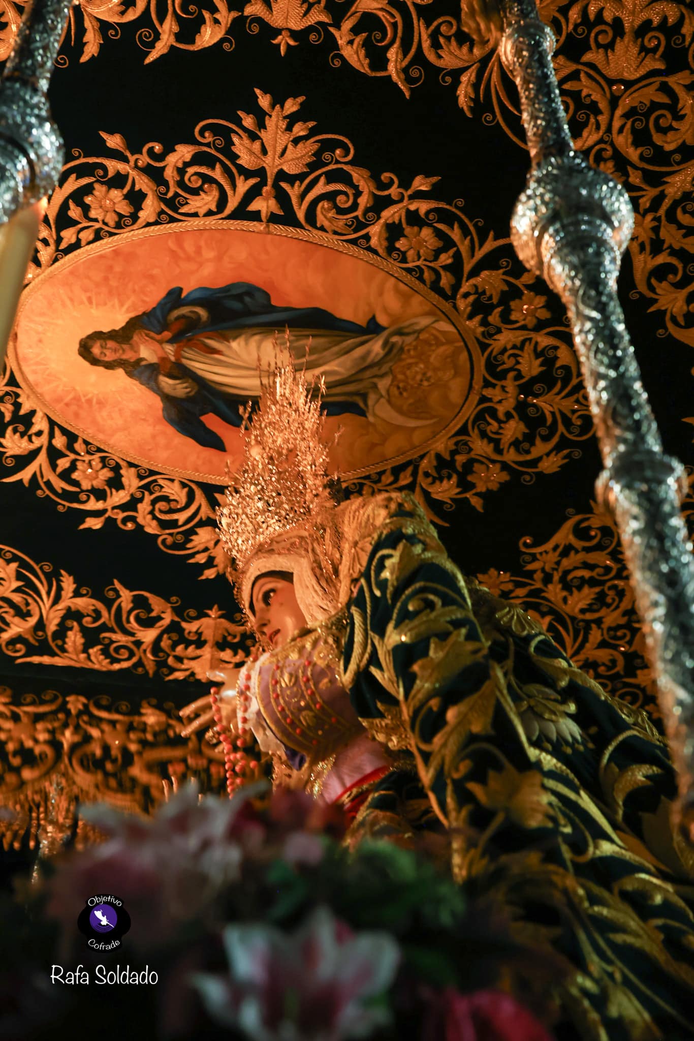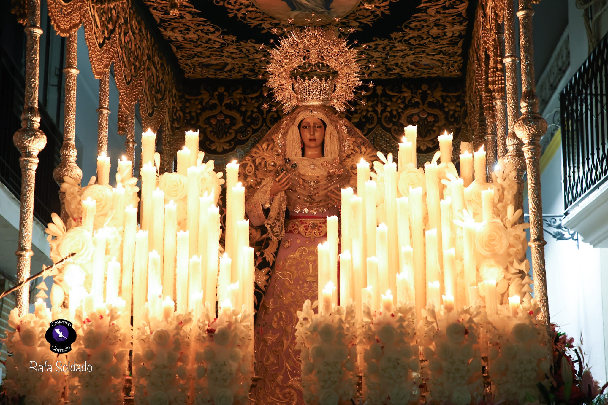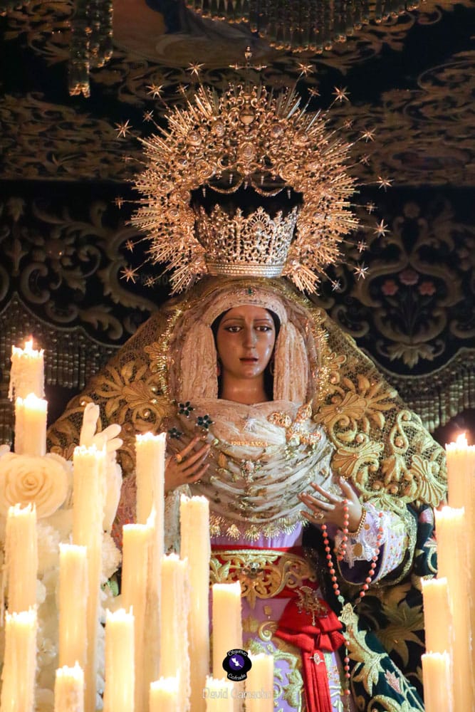 La dolorosa estrenó una saya de terciopelo malva bordada en oro entrefino con corales, obra dirigida por Joaquín Salcedo, además de un exorno floral diseñado por Francisco Marrufo, en el que destacaron rosas, lilium, proteas y romero. También se incorporó un llamador con la impronta de Fernando y Bernarda de Utrera, todo ello enmarcado en un paso que fue admirado por miles de devotos.