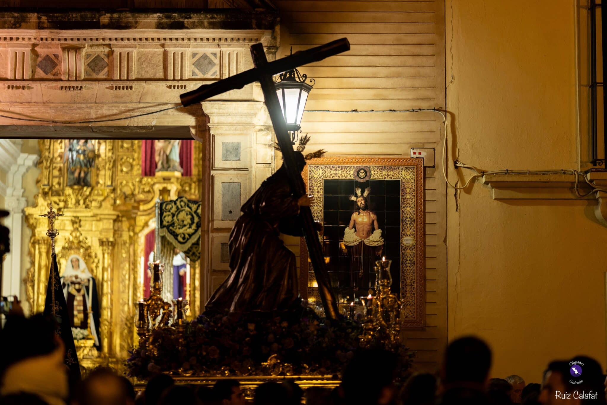 El cortejo partió desde la Parroquia del Sagrario a las 18:45 h, transitando por lugares emblemáticos como la Puerta del Perdón, la Plaza de San Francisco y la Plaza Nueva, hasta regresar nuevamente a su templo. La Capilla Musical “Sonos Angeli” de Jerez de la Frontera acompañó el piadoso rezo de las estaciones.
